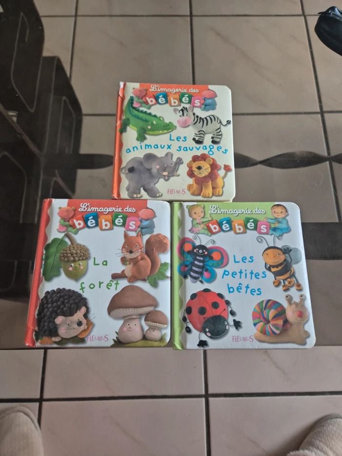 3 livres l'imagerie des bébés Les petites bêtes La forêt Les animaux sauvages (livre abîmé sur 1 angle et jauni)