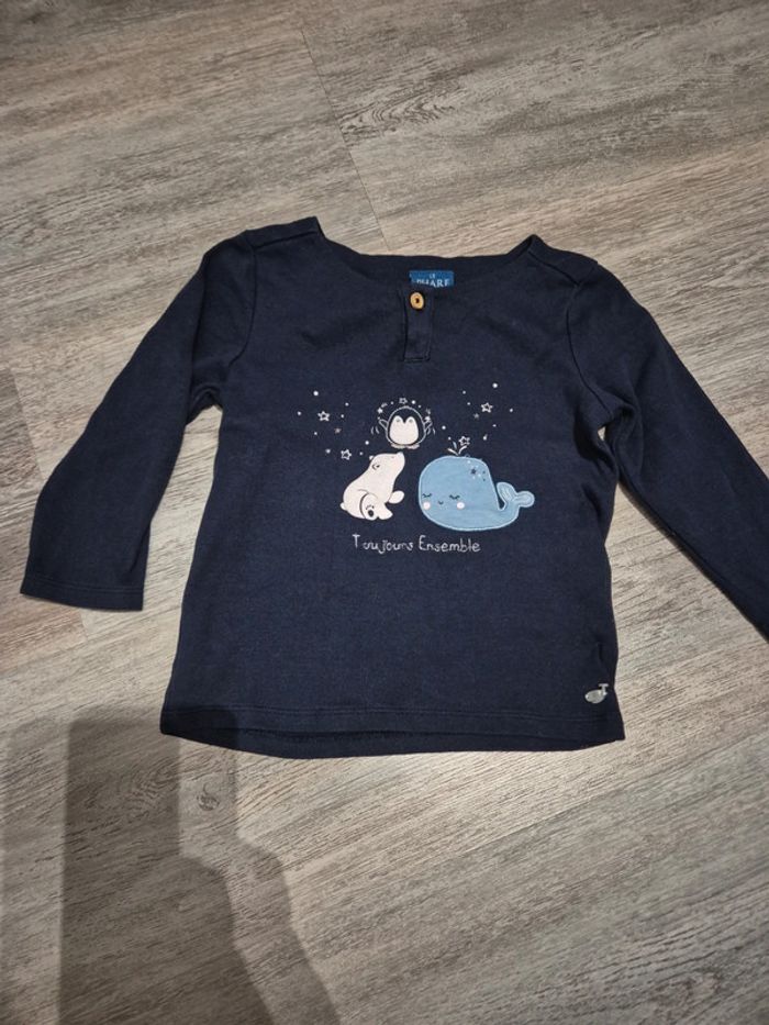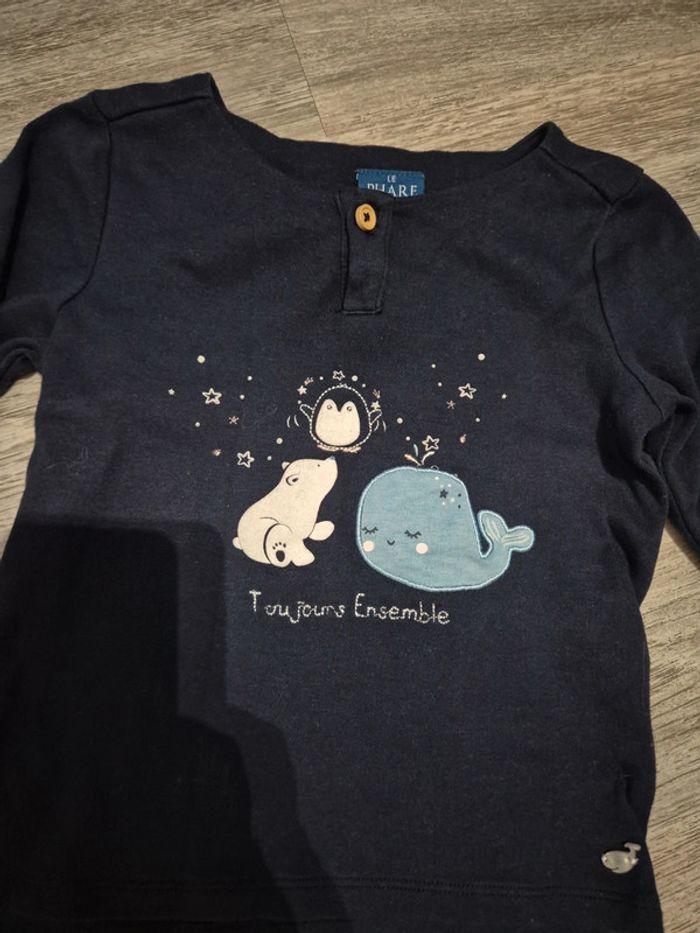 Tee shirt manches longues marine le phare de la baleine