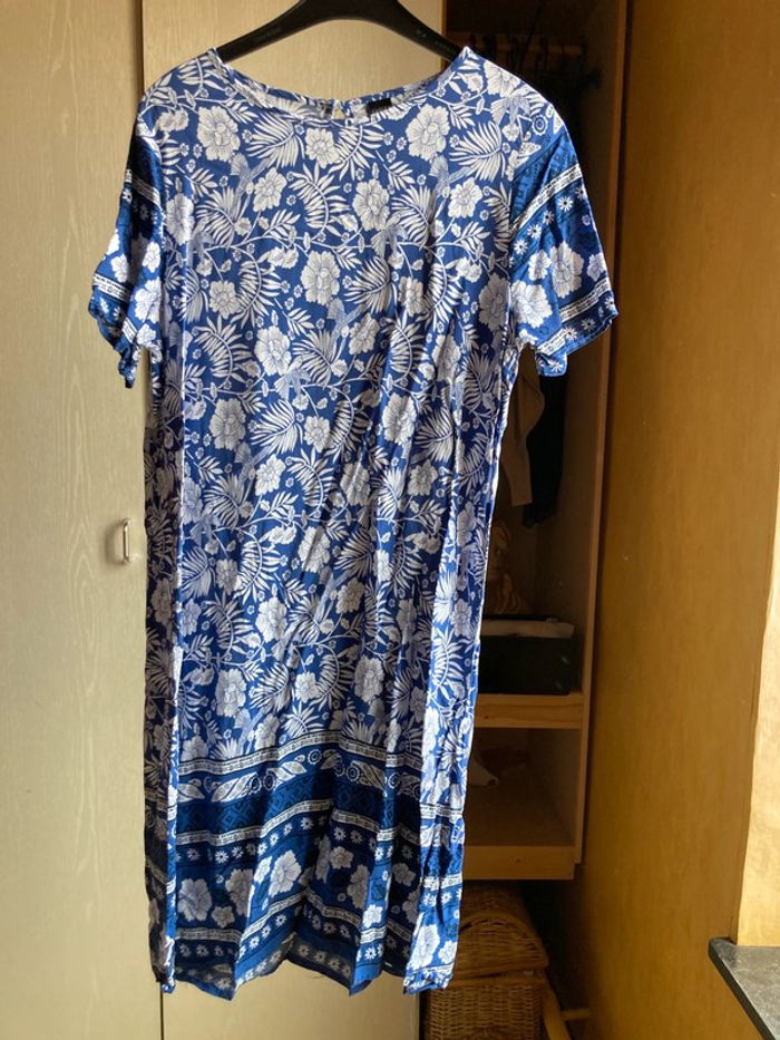 Superbe petite robe blanche a fleurs dessins bleus - photo numéro 2