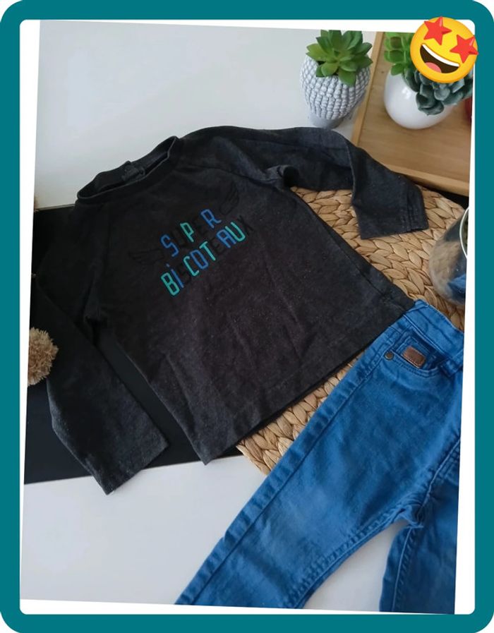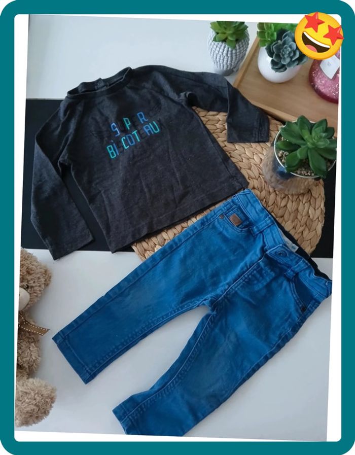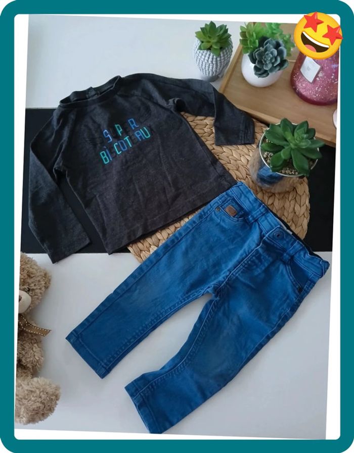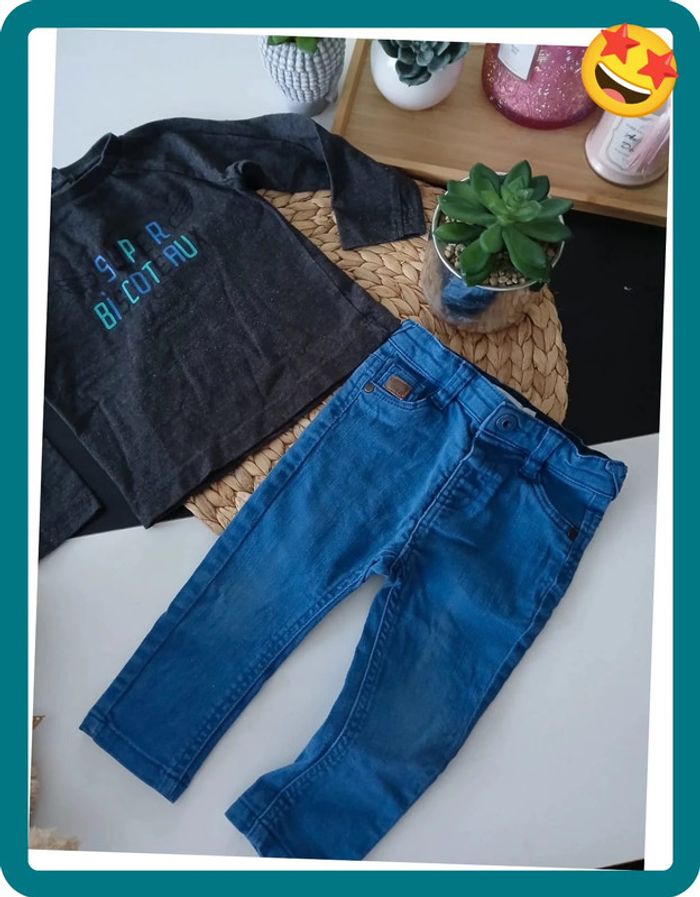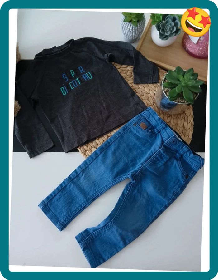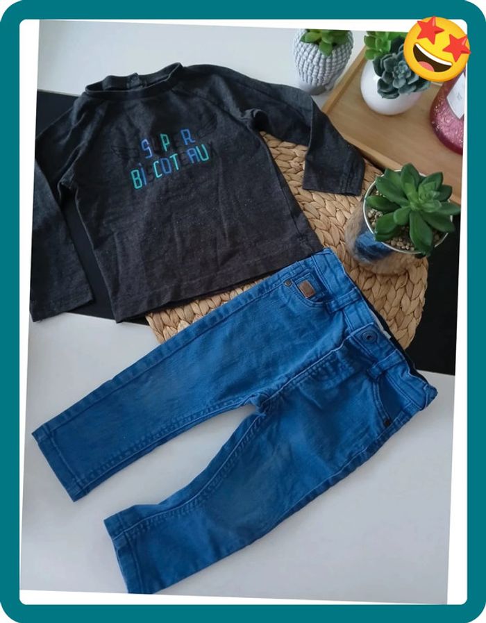📌Compte Pro:  Si vous voulez un lot contacter moi😉 ♦️-10% pour 2 Articles ♦️-20% dès 3 Articles 🌼Ensemble deux pieces, Haut manches longues, et jeans bleu, en très bon état ❤️Plusieurs Articles de la même catégorie sur mon dressing➡️ #mayevêtemntgarçon18mois 📥 Envoie Rapide et Soigné des colis, Tous les jours, Sous 24/48h maximum🚀 🚚 Envoie sur tous les points Relais ⚠️Vêtements sans défaut particulier 🚭 Maison non-fumeur 🎁 Cadeaux offert si possible