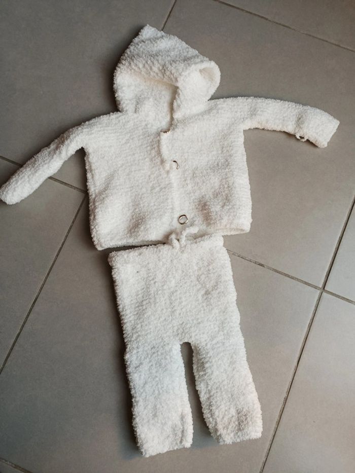 Ensemble taille 1/3 mois Tricoté main TBe général , point a faire à la manche voir photo