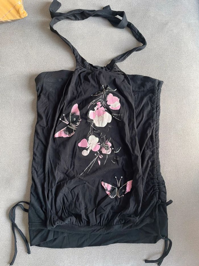 Top noir avec papillons Attache autour du cou Peux se resserrer au niveau des hanches Taille 34/36