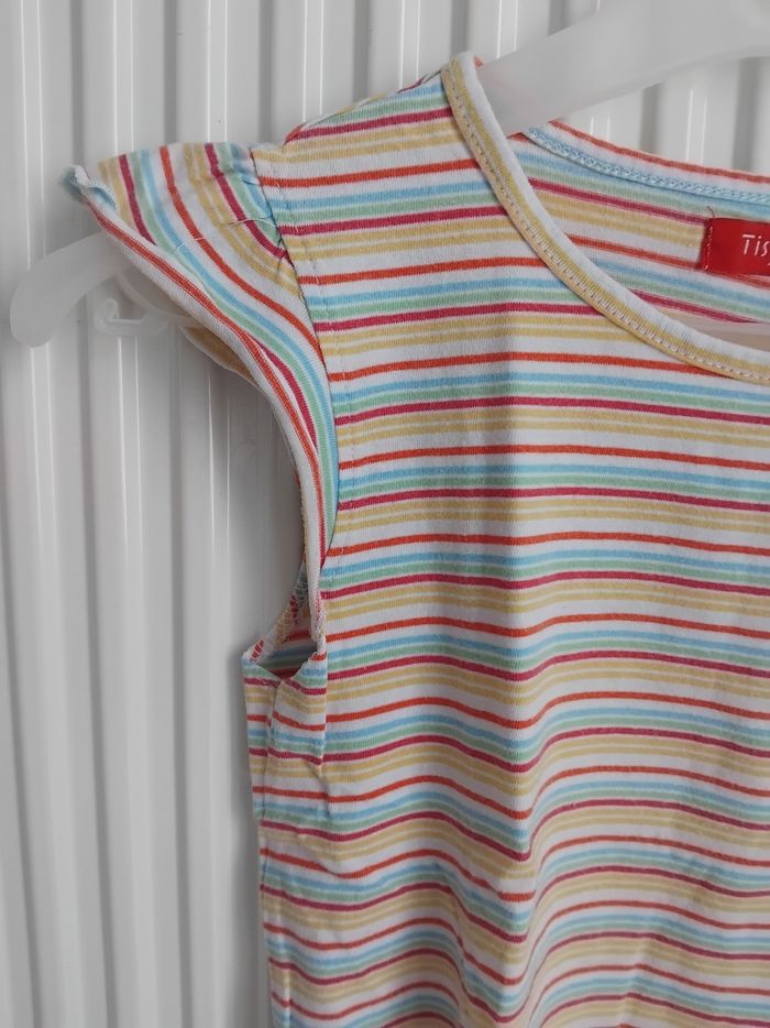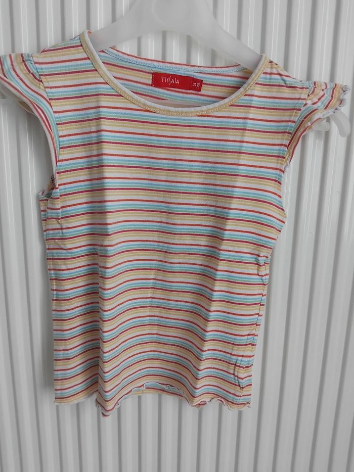 T-shirt à rayures colorées. Col rond. 100 % coton. Marque tissaia . #fille5ansnade3033