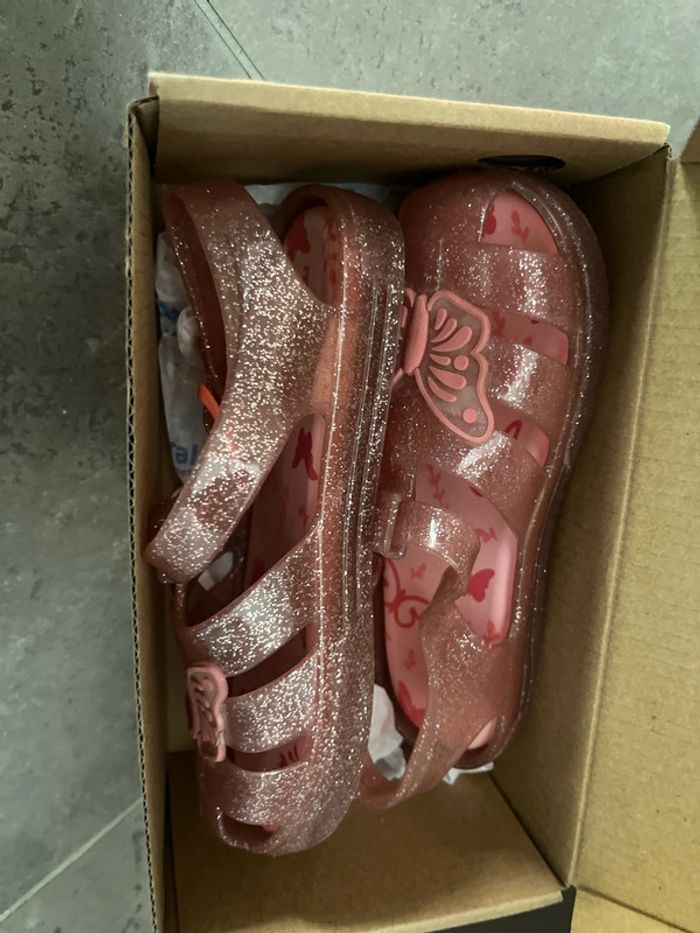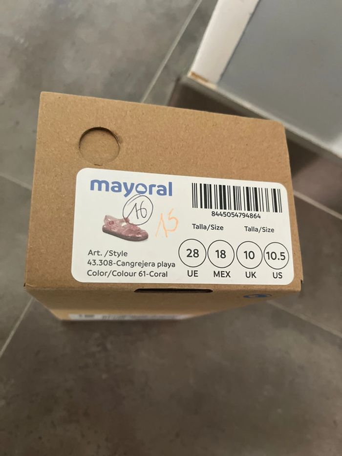 Taille 28 mais taille grand ! Comme un 29 facile - chaussures été plage mayoral - la semelle se retire pour aller dans l eau. Modèle sympa très bon état ! Portées une fois rose à paillettes