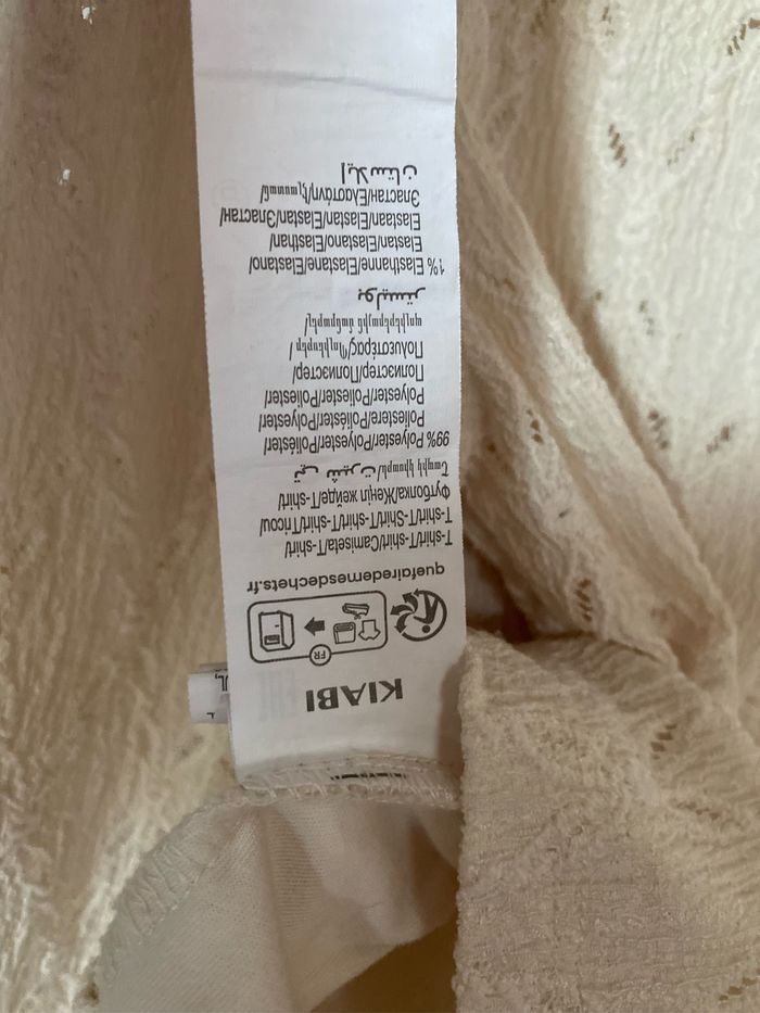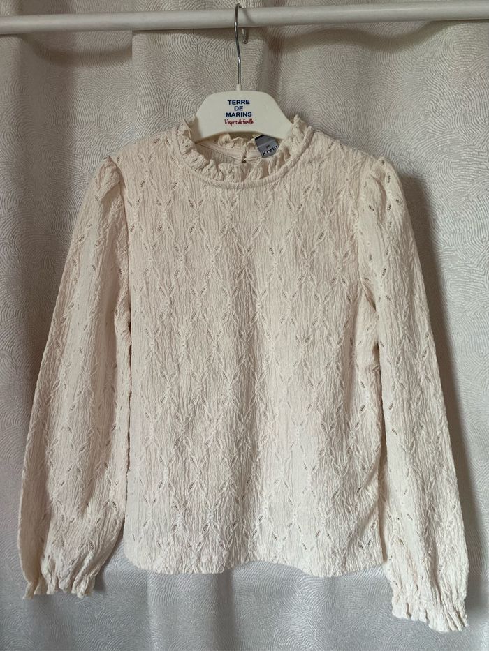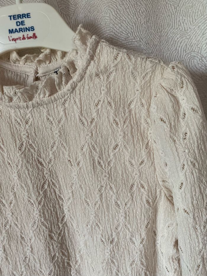 T-shirt Chemisette lycra écru en parfait état, comme neuf, très peu porté Manches longues Tissu mailles ajourées, doublé devant Taille 8 ans 126-131 cm 99% polyester 1% elasthane kiabi