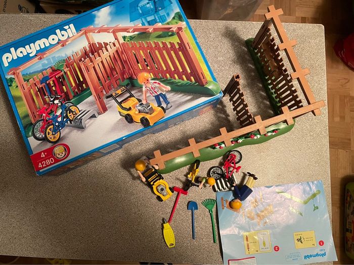Boîte playmobil 4280 L’abri pour vélo et outils de jardin Complet avec boîte et notice et deux personnages en plus À partir de 4 ans D’autres playmobil dans ma boutique