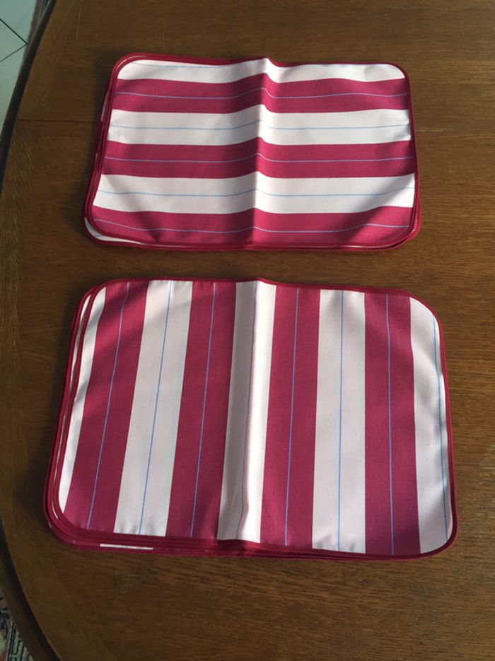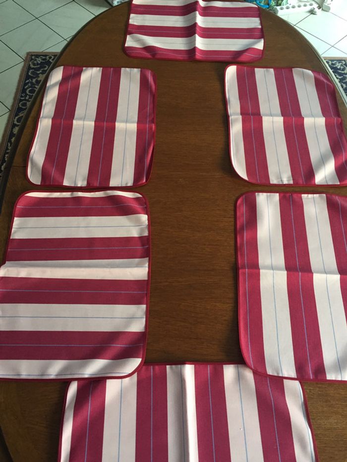 8 sets de table à rayures neufs Rose et Bordeaux avec une petite rayure bleue 4 avec des rayures horizontales 4 avec des rayures verticales Taille 50/35 cm