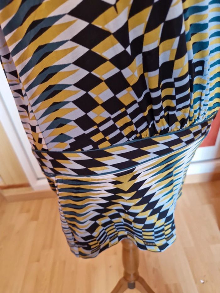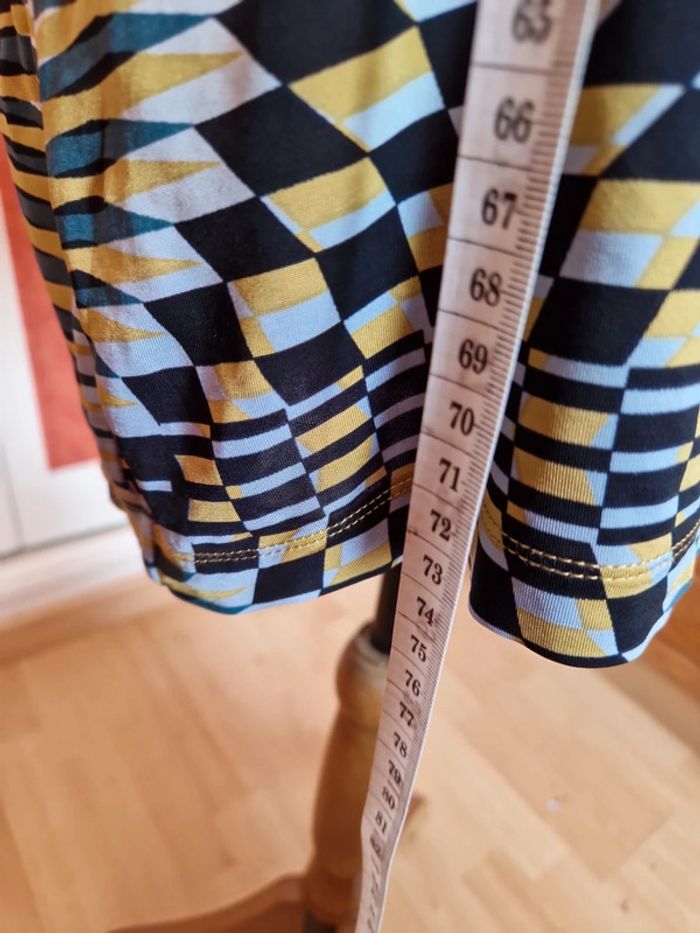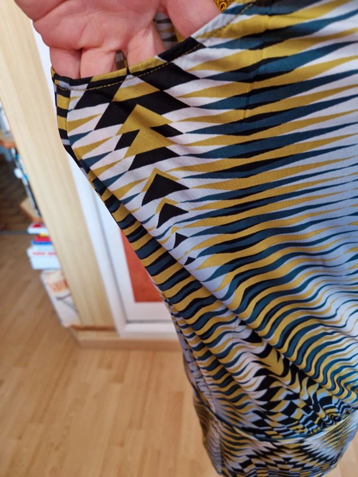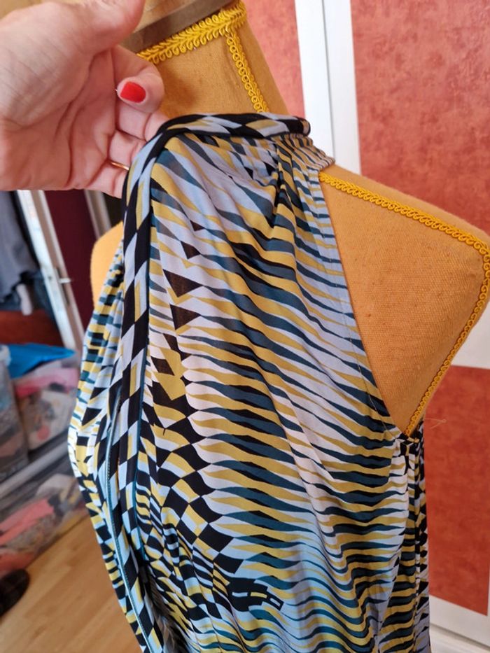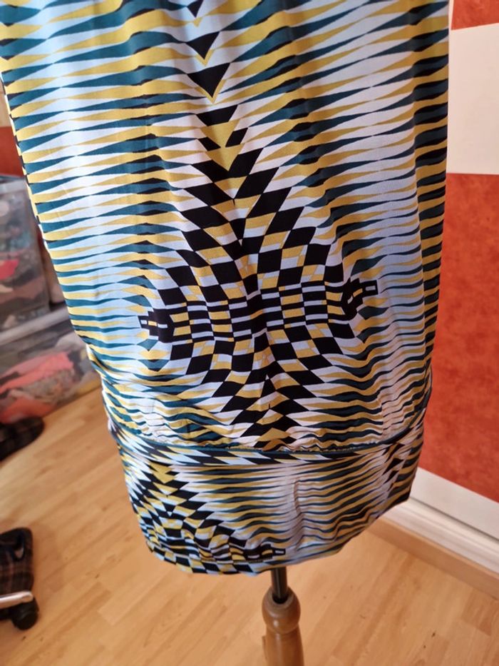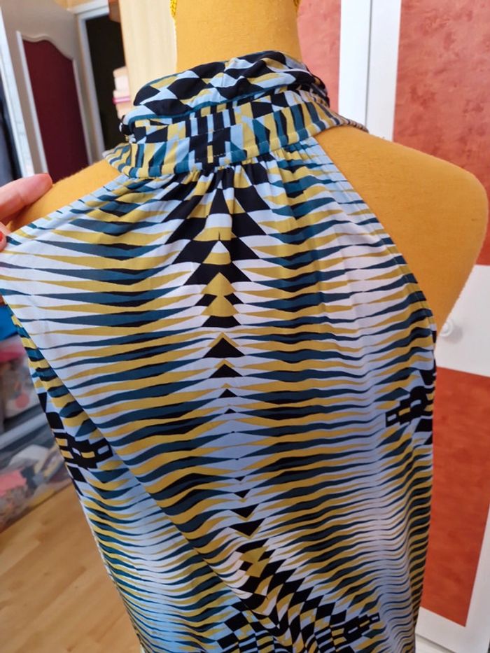 Robe très courte ou tunique à voir. Mesures en photo. Devant décolleté très plongeant sans fermeture. Sans manches.