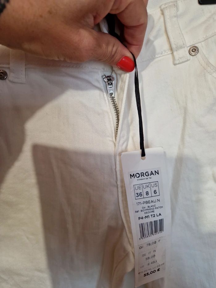 Jeans neuf avec étiquette. Effet déchiré et griffée. Taille basse.