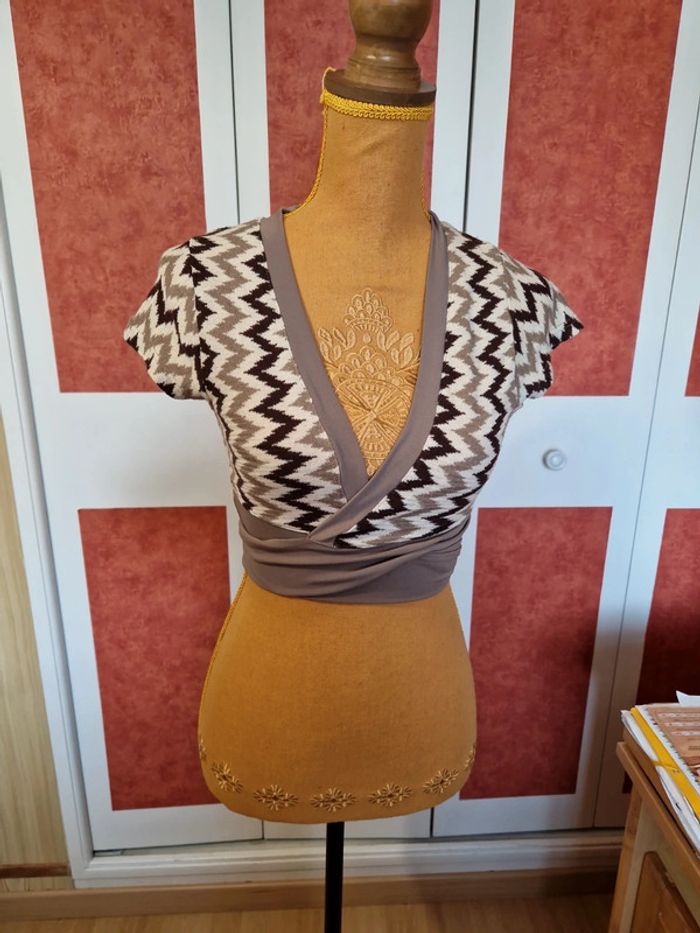Haut cache coeur en très bon état très peu portée. Liens à noué autour de la taille. Col v.