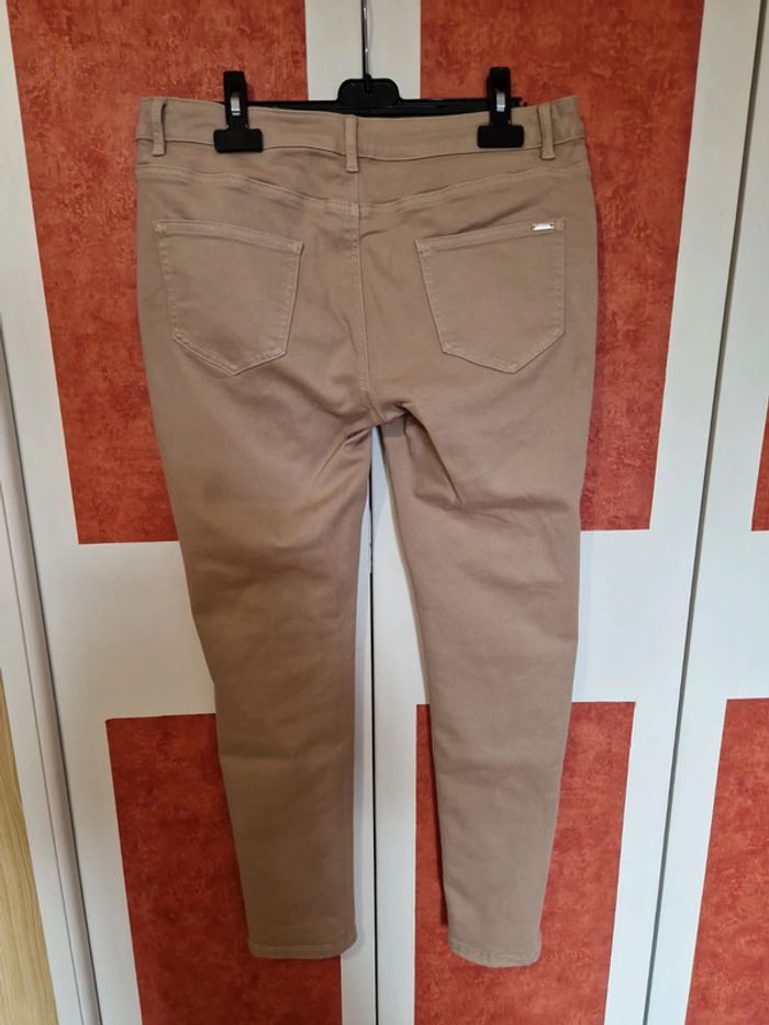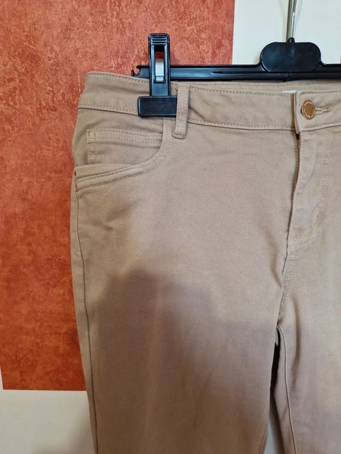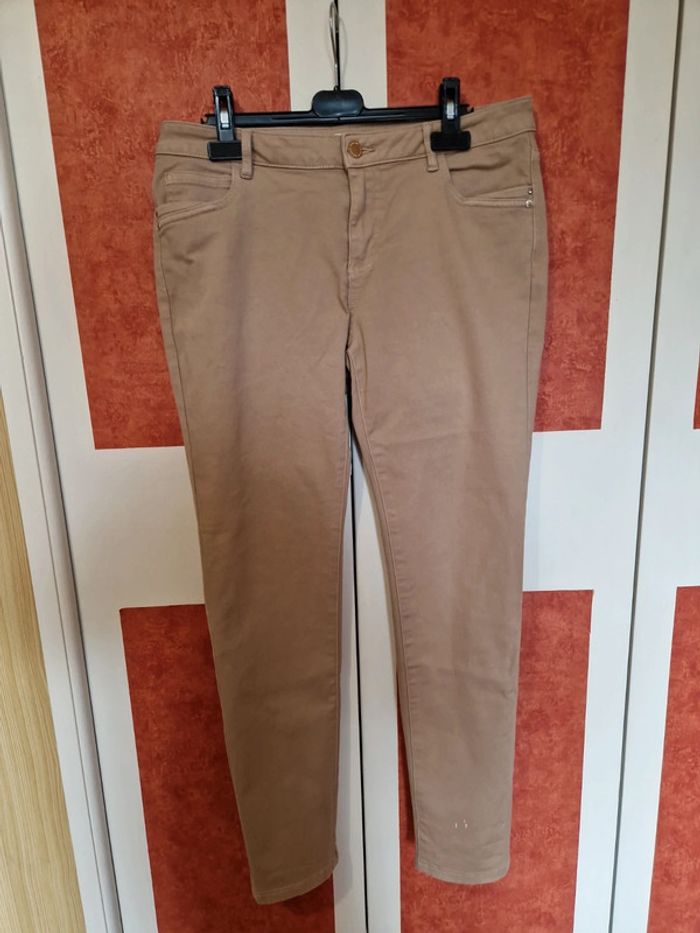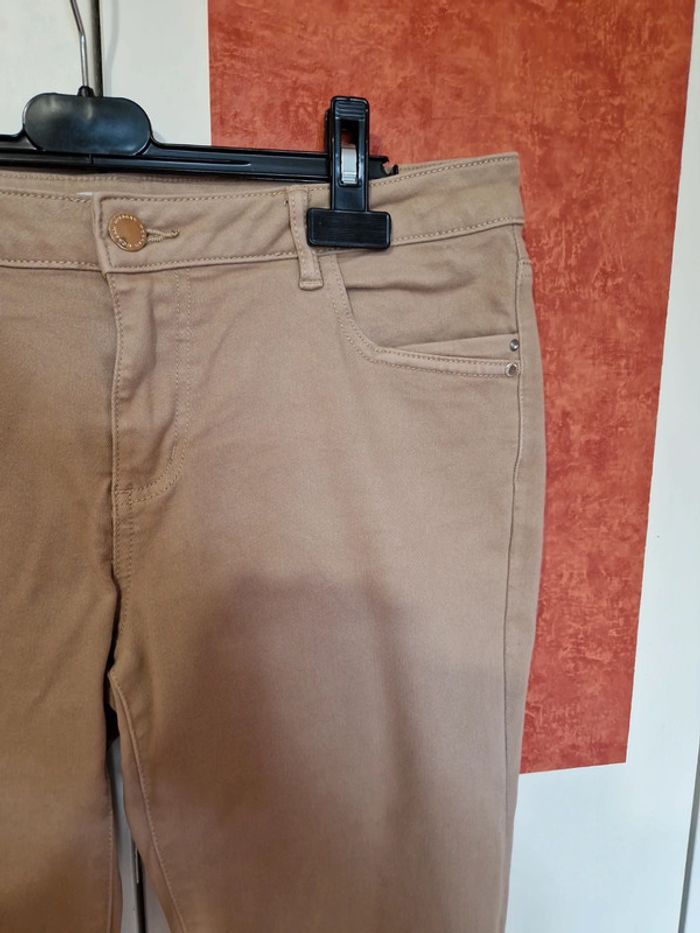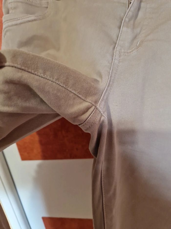 Pantalon ou jeans en très bon état. Pas de de déchirure ni de trou. 2 petits points de décoloration en bas d'une jambe. Voir photo Étiquette composition et taille coupé. Contient de l elasthanne.