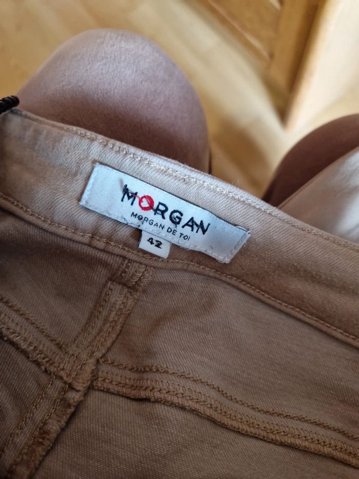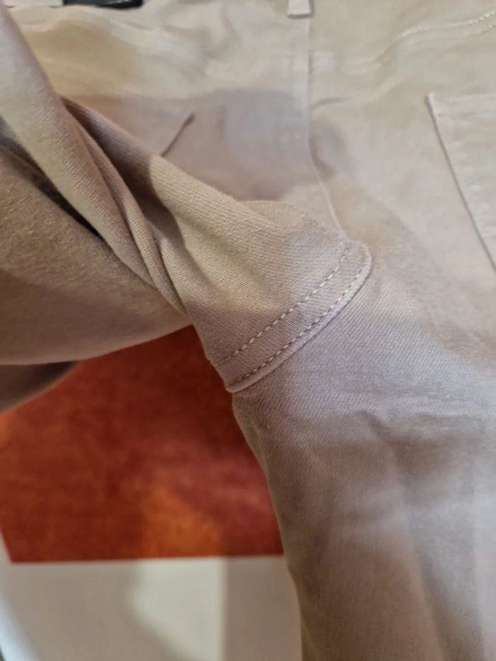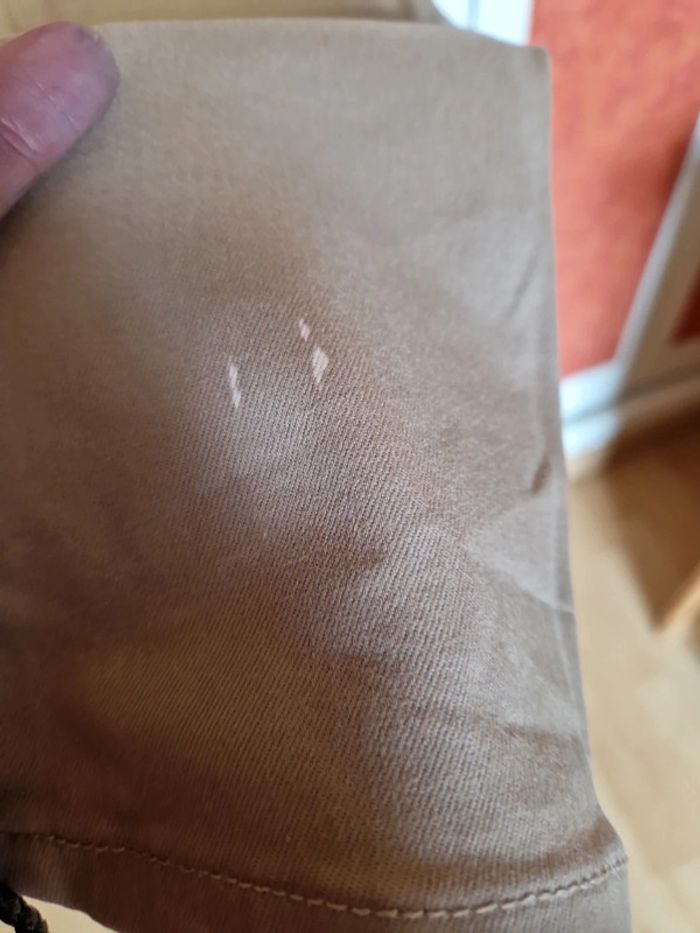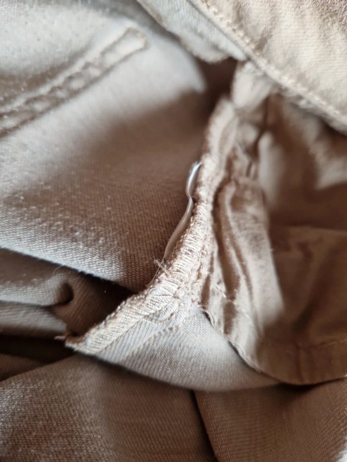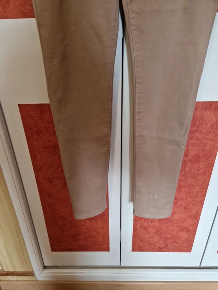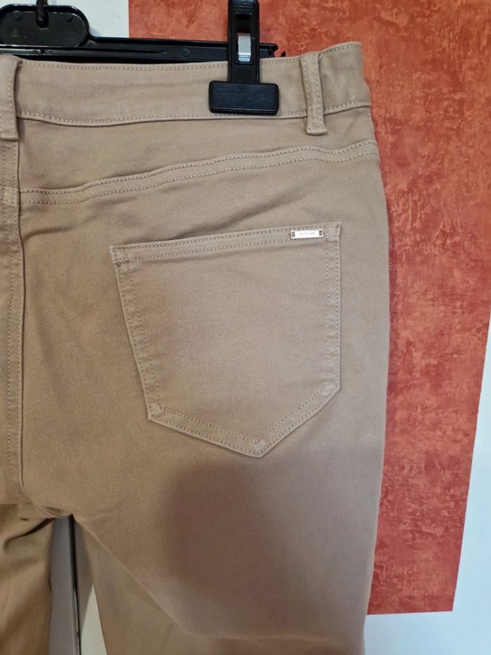 Pantalon ou jeans en très bon état. Pas de de déchirure ni de trou. 2 petits points de décoloration en bas d'une jambe. Voir photo Étiquette composition et taille coupé. Contient de l elasthanne.
