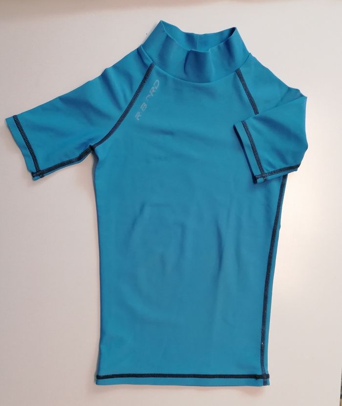 T. Shirts de bains garçon 4 ans /102-109cm Manche courte 79%polyamide. 21%elasthane Idéal pour la plage /et piscine Pour les peaux sensibles au soleil. Porté 2fois, en très bon état général. 4€.