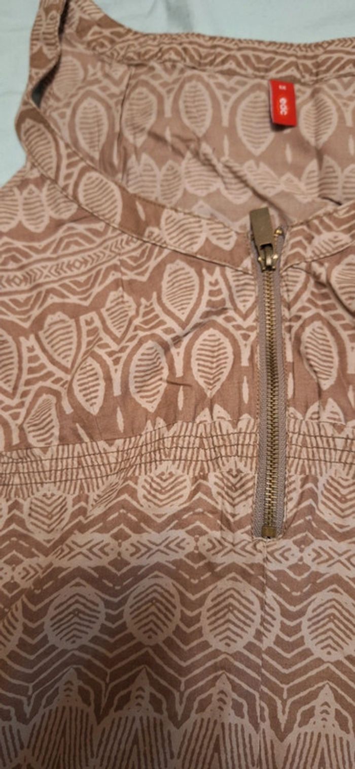 Débardeur blouse de couleir marron clair et dessins blancs, marque EDC. Taille M EDC = L France Étiquette de la composition coupée Réductions sur lot activées