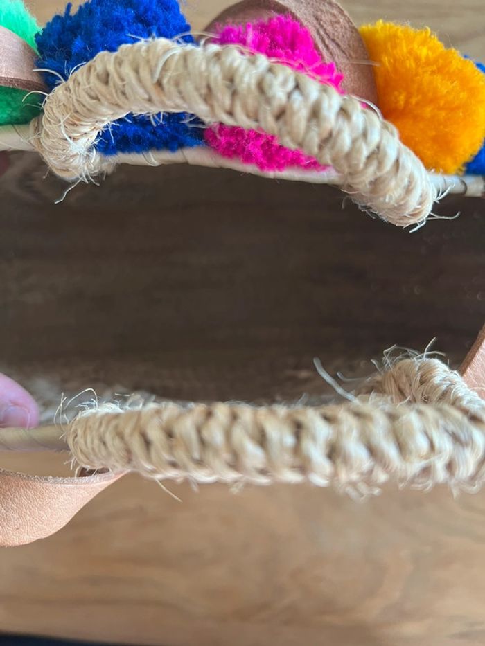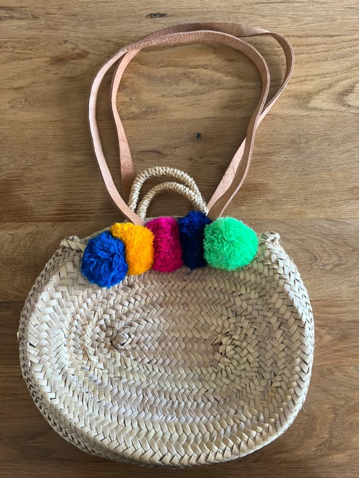 Sac panier avec pompons Porté main ou bandoulière En très bon état Dimensions 31 x 26 cm #sacàmain #sacbandoulière #panier #plage #vacances #fourretout