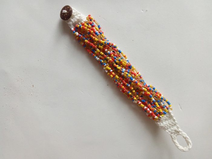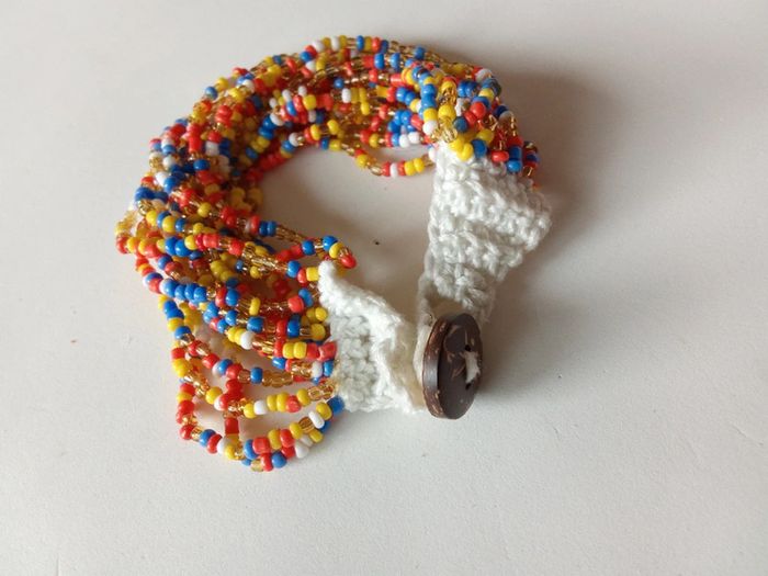 Bracelet à perles et crochet avec fermeture avec bouton en coco #boho #bohemian #boheme #hippie #bracelet #pulsera #wristlet #braceletfemme #femme #mujer #mulher #woman #bijou #accessoire #neuf #new #nuevo #crochet #coco #bouton #original #colore #ethnique #summervibes #plage #playa #praia #beach #summer #ete #verano #multicolore #dafnezneuf #dafnezbijou #dafnezfemme