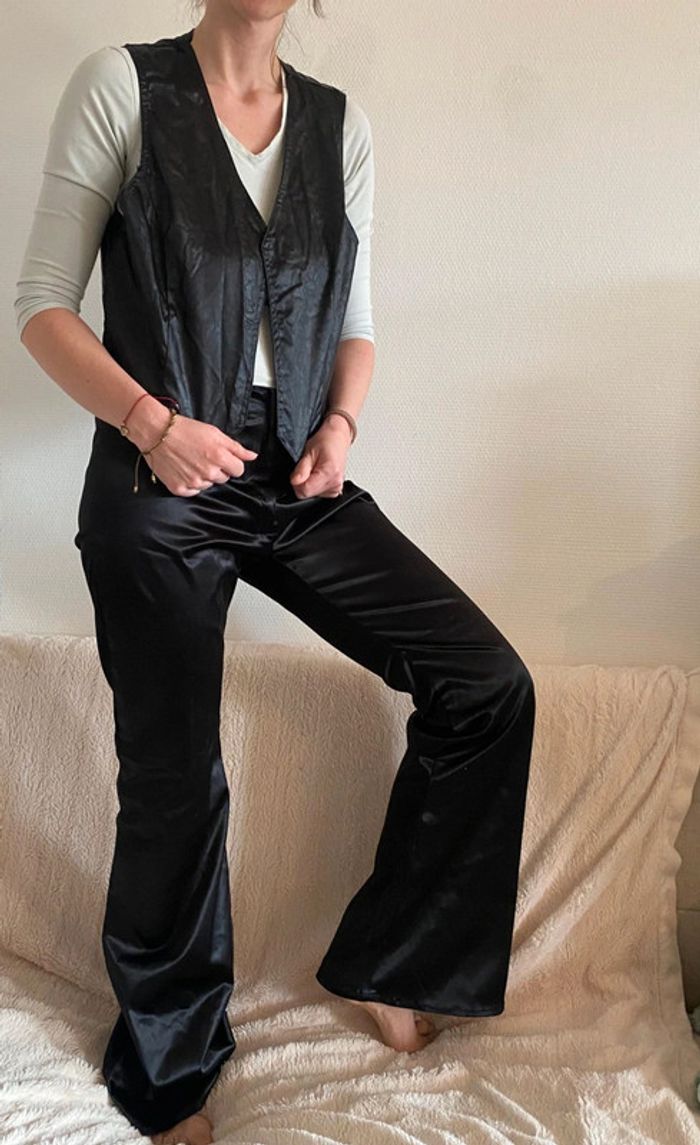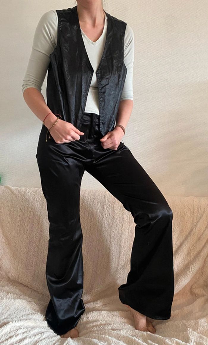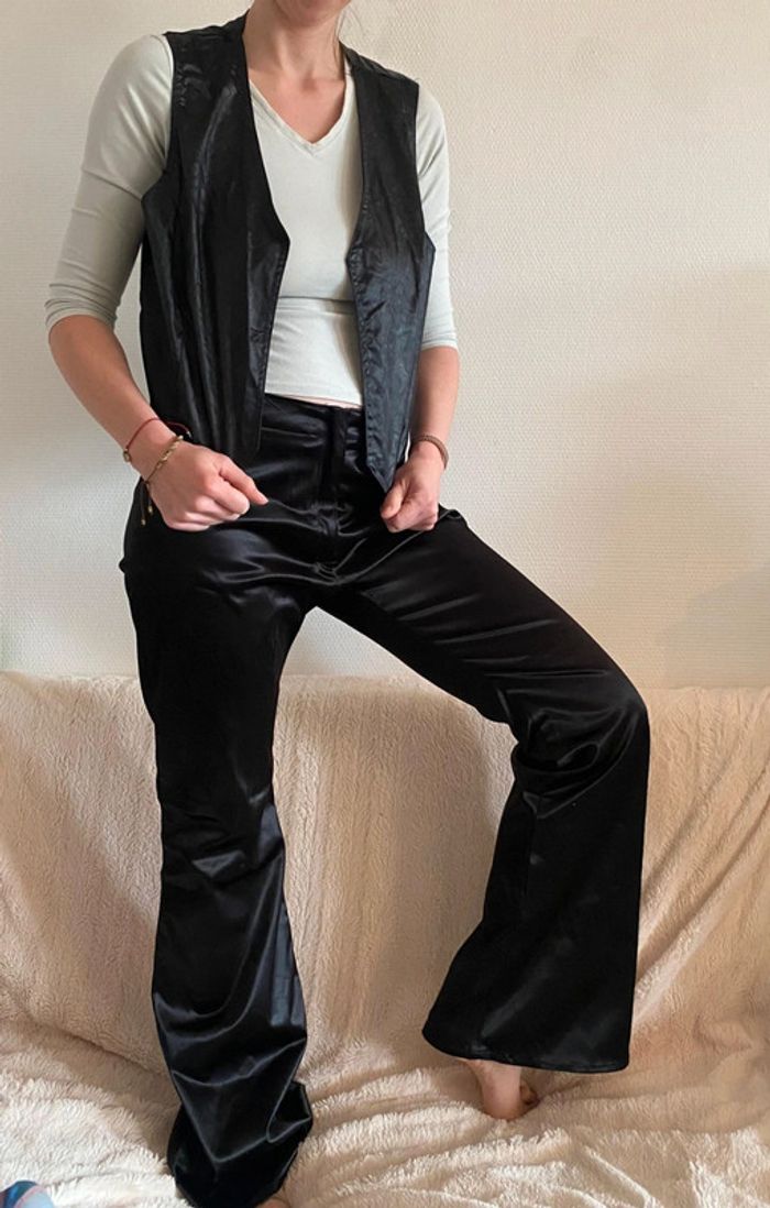 Ensemble pantalon pattes deph + gilet Fait maison - 36 / 38 Tissu "glissant" (pas du cuir) #pattesdeph #pattesdelephant #ensemble #pantalon #gilet #noir #costume #sexy #femme #mujer #woman #traje #conjunto #twopieces #élégant #chic #unique #original #homemade #handmade #faitmaison #faitmain #dafnez36 #dafnez38 #dafnezfemme #dafnezechange
