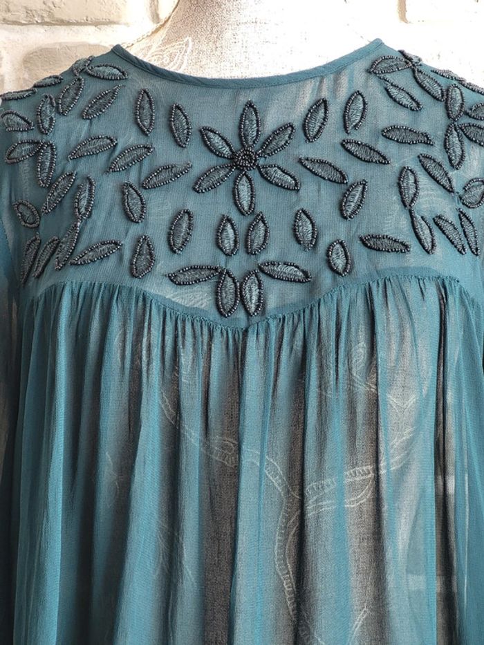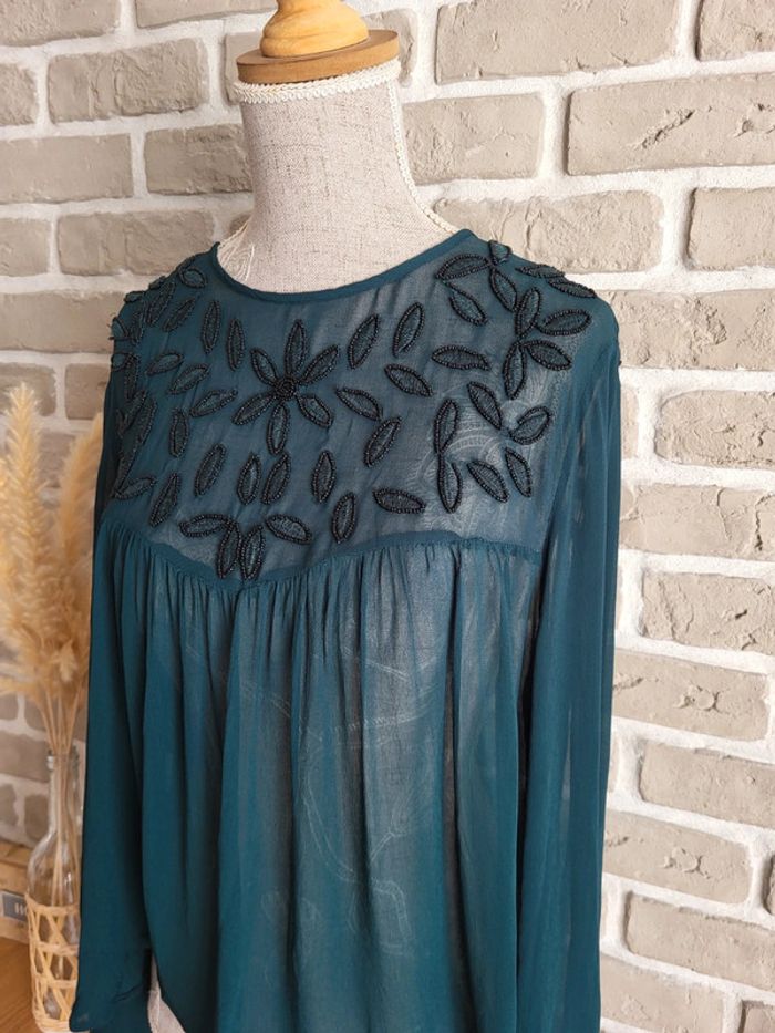 Blouse vert sapin Mango - Broderies et perles - photo numéro 2