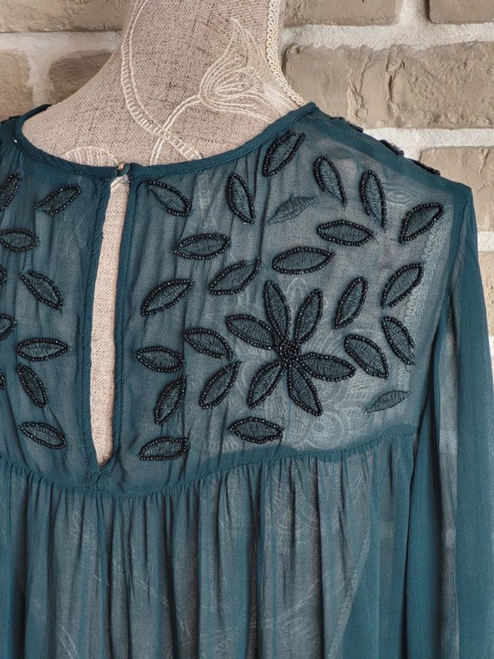 Blouse vert sapin Mango - Broderies et perles - photo numéro 6