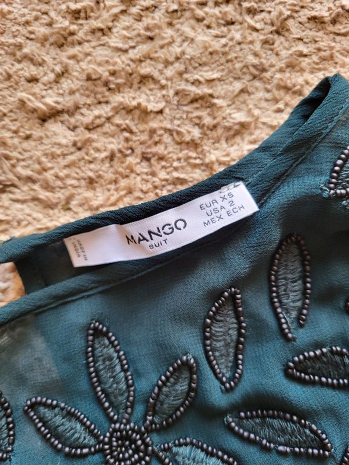 Blouse vert sapin Mango - Broderies et perles - photo numéro 1