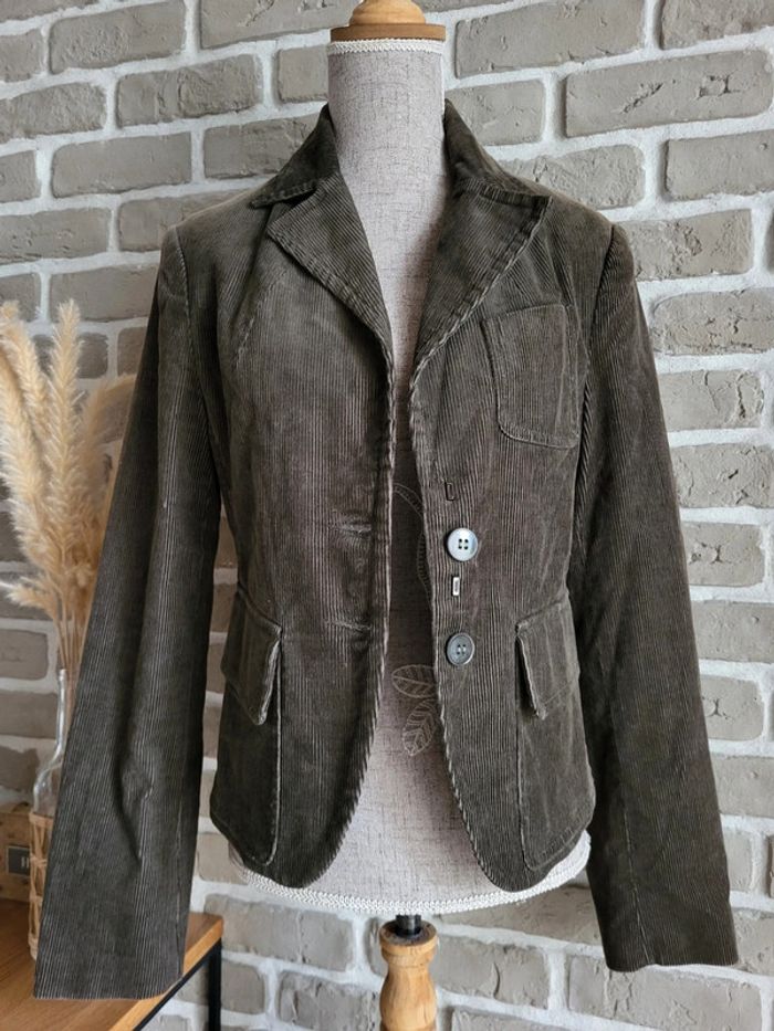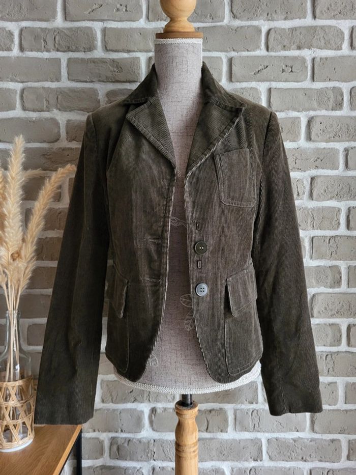 Blazer en velours côtelé kaki foncé - Mango - Collection Vintage - photo numéro 1