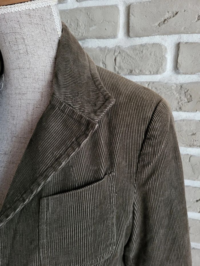 Blazer en velours côtelé kaki foncé - Mango - Collection Vintage - photo numéro 12