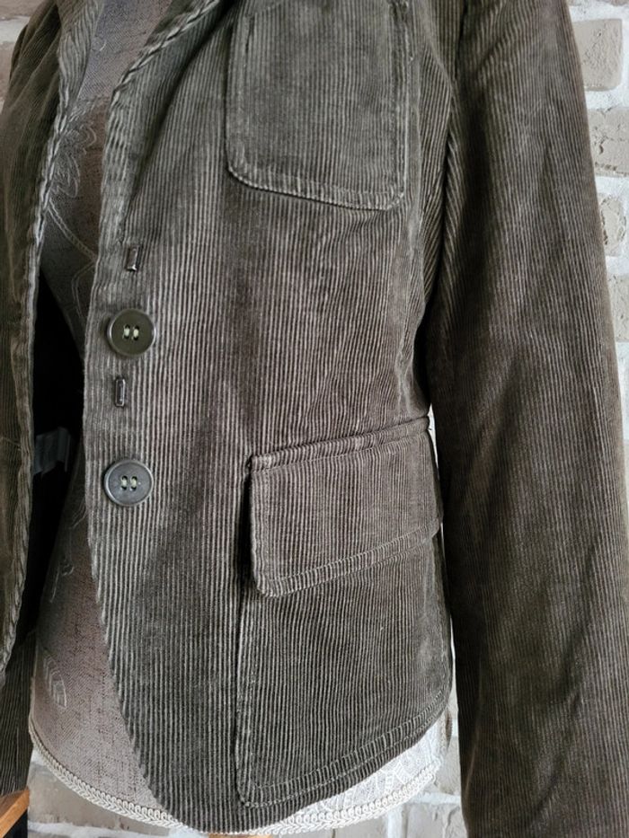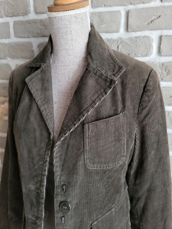 Blazer en velours côtelé kaki foncé - Mango - Collection Vintage - photo numéro 3