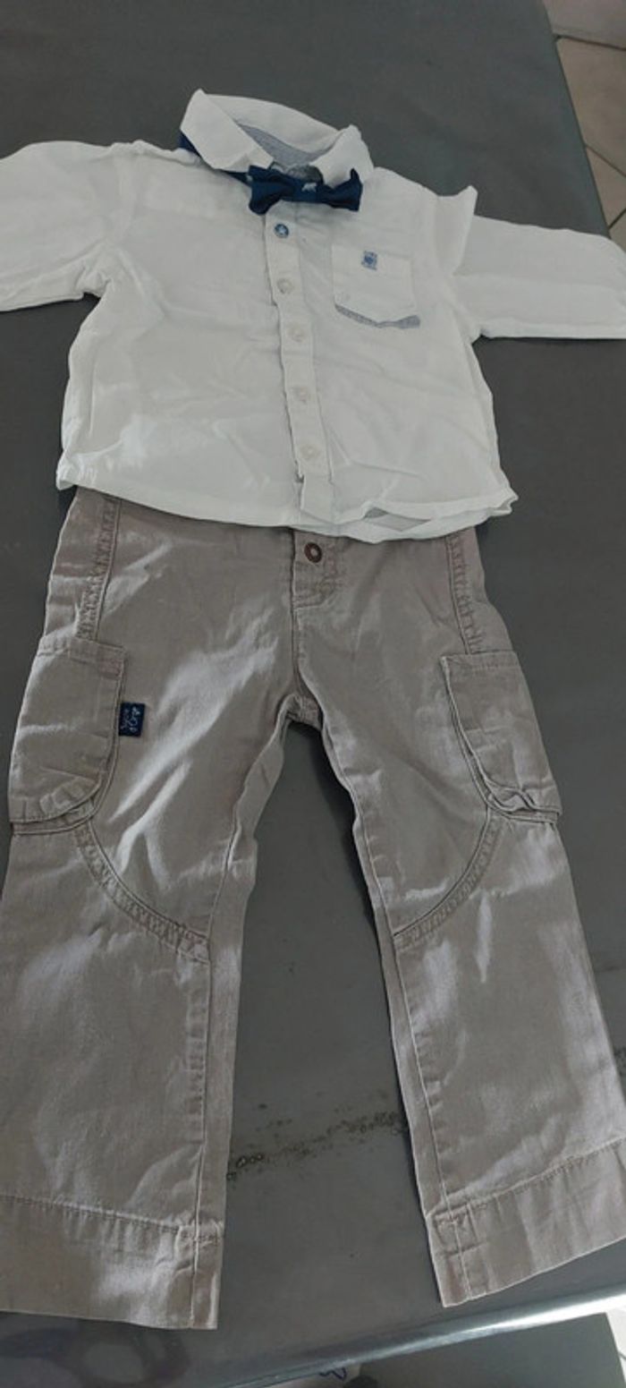 1 noeud papillon bleu gemo 1 chemise grande blé 1 pantalon sucre d'orge (porte )