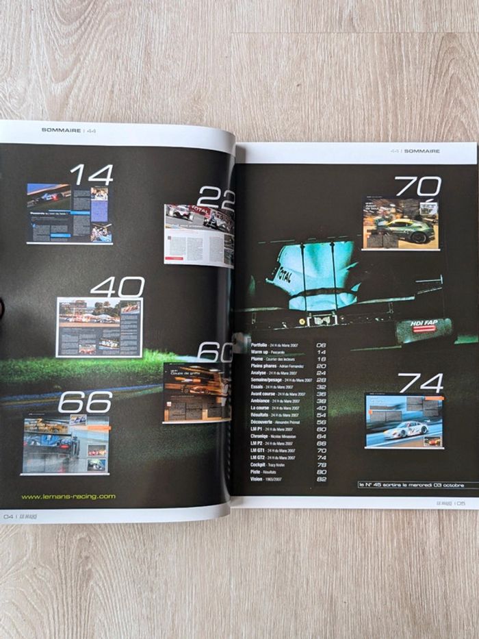 #_LeMansRacing_ #_24hDuMans_ numéro 44 (août 2007) ALMS, Petit Le Mans, ELMS, FIA-GT, Grand-Am, endurance Résumé des 24 Heures du Mans 2007 84 pages De nombreux numéros disponibles jusqu'au n°75, n'hésitez pas à me contacter si vous cherchez un numéro précis.
