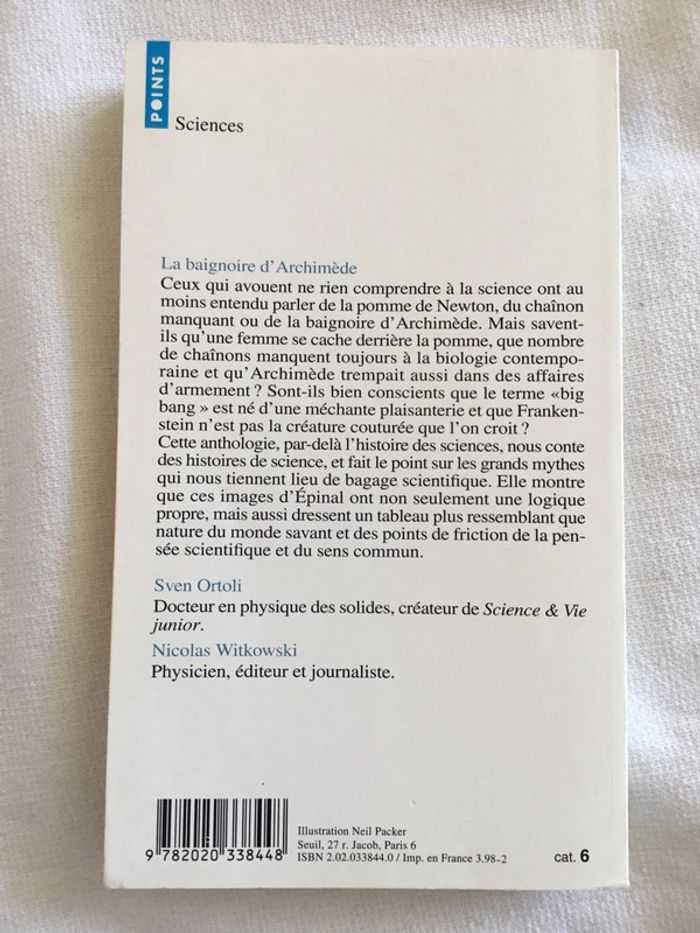 Vend livre de Sven Ortoli et Nicolas Witkowski la baignoire d’Archimède petite mythologie de la science. Très bon état