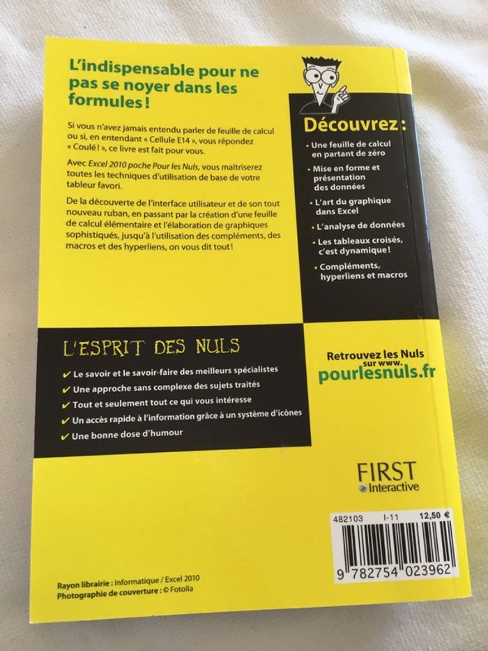 Vend livre Excel pour les nuls 2010 Très bon état