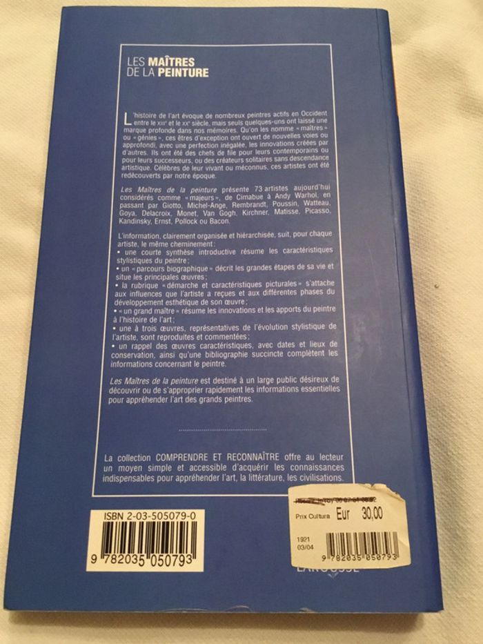 Vend livre en très très bon état les maîtres de la peinture de la collection Larousse