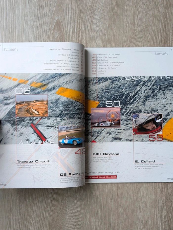 #_LeMansRacing_ #_24hDuMans_ numéro 35 (avril 2006) ALMS, Petit Le Mans, ELMS, FIA-GT, Grand-Am, endurance Romain Dumas, Le Mans Series, Yves Courage, DB Panhard, Mil Milhas, 24 Heures de Daytona, Stefan Bellof... 68 pages De nombreux numéros disponibles jusqu'au n°75, n'hésitez pas à me contacter si vous cherchez un numéro précis.