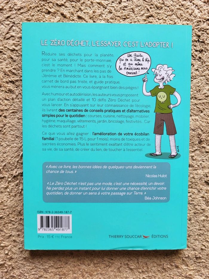 ⭐️ Nombreux livres dans mon dressing réductions sur les lots activées ✨️ 📚 "Famille (presque) Zéro Déchet – Ze Guide", livre à la fois utile, accessible et plein d’humour pour toute la famille. Écrit par Jérémie Pichon et illustré par Bénédicte Moret, ce guide vous accompagne pas à pas vers une vie plus responsable, avec des gestes concrets, des alternatives simples et zéro culpabilité ! 📖 Couverture et pages en très bon état 📕 Avec humour et autodérision, ce couple raconte comment ils ont transformé leur quotidien pour réduire leurs déchets à un simple bocal par an. Vous y trouverez des explications claires, des chiffres parlants, des conseils pratiques pour chaque pièce de la maison, ainsi que des recettes DIY (produits ménagers, cosmétiques, etc.). Le tout accompagné de dessins ludiques et percutants.