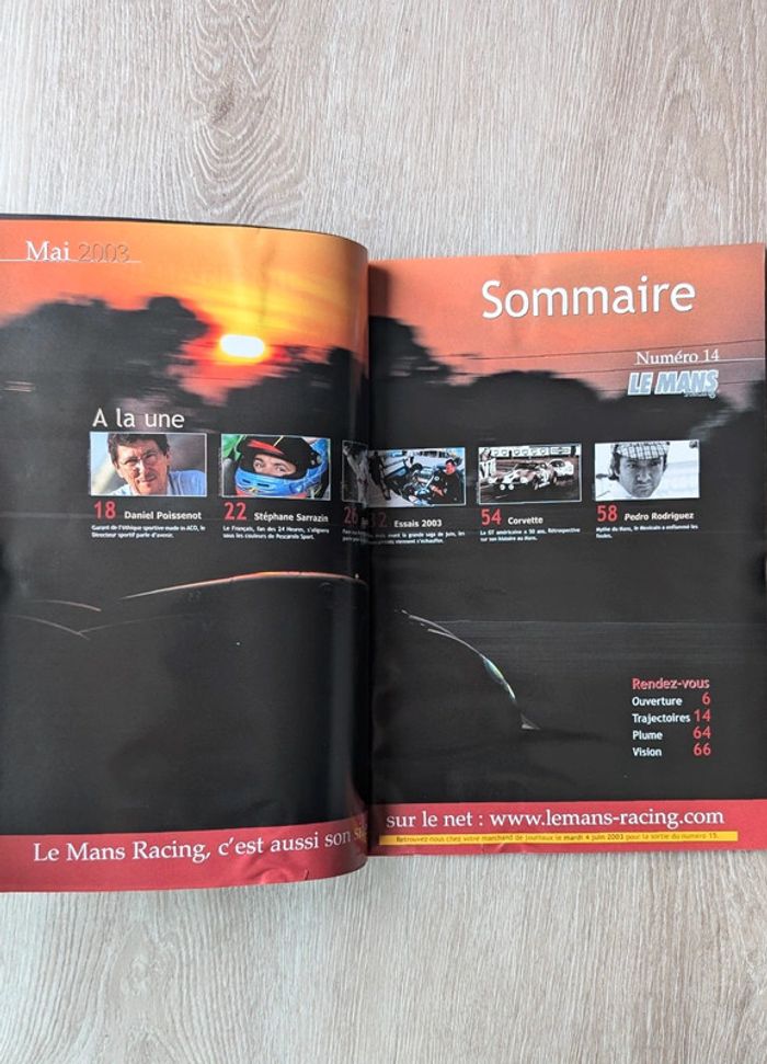 #_LeMansRacing_ #_24hDuMans_ numéro 14 (mai 2003) 24 Heures du Mans, ALMS, Petit Le Mans, ELMS, FIA-GT, Grand-Am, endurance. Daniel Poissenot, Stéphane Sarrazin, 12 Heures de Sebring, Essais 24 Heures du Mans 2003, Corvette au Mans, Pedro Rodriguez... 68 pages De nombreux numéros disponibles jusqu'au n°75, n'hésitez pas à me contacter si vous cherchez un numéro précis.