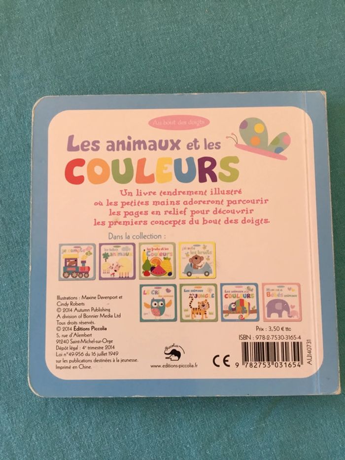 Vend livre les animaux et les couleurs Pages cartonnées Très bon état Permet à l’enfant d’apprendre ses couleurs