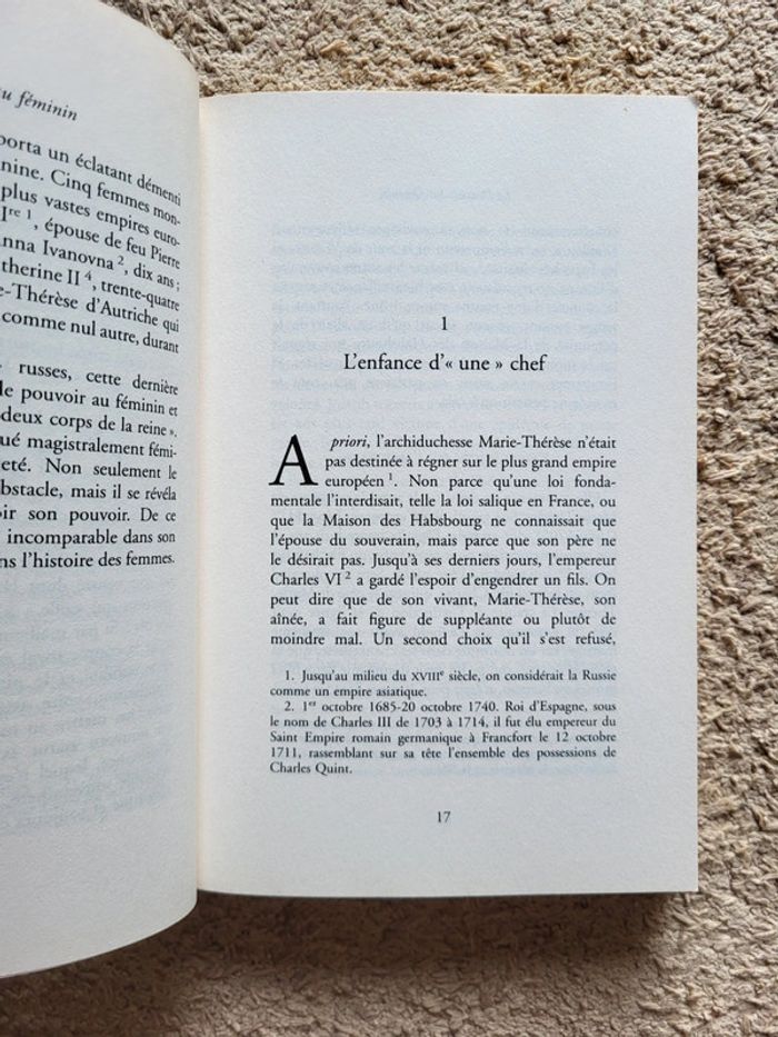 ⭐️ Nombreux livres dans mon dressing réductions sur les lots activées ✨️ 📚 Livre "Le pouvoir au féminin : Marie-Thérèse d'Autriche, l'impératrice-reine" d'Élisabeth Badinter 📖 Bon état, sans usure 📍Une lecture incontournable pour les passionnés d’histoire et de biographies féminines 📕 Portrait de Marie-Thérèse d'Autriche, une femme d'exception qui, à la tête du Saint-Empire romain germanique, a marqué l’histoire par son pouvoir et son intelligence politique. Un récit captivant sur le parcours d'une souveraine et son influence dans un monde dominé par les hommes.