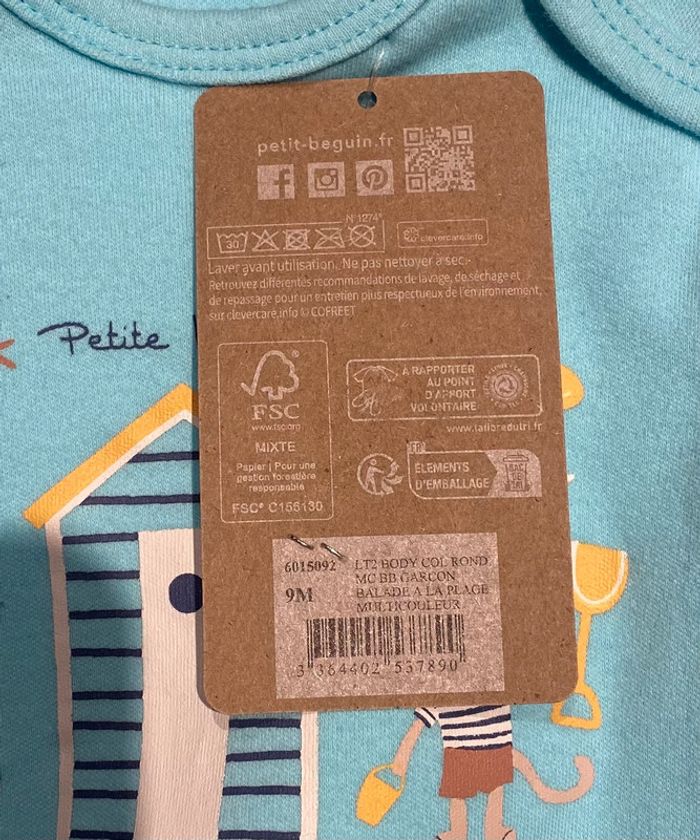 Bodies lot de 2 garçon 9 mois Petit Béguin - photo numéro 3