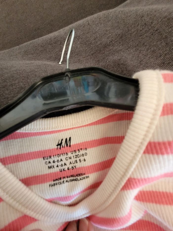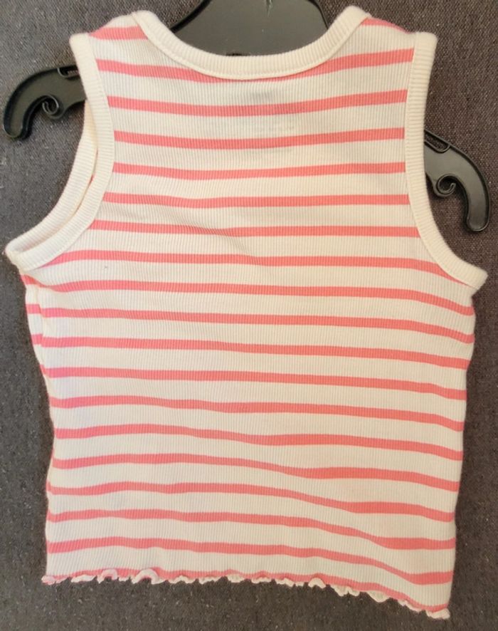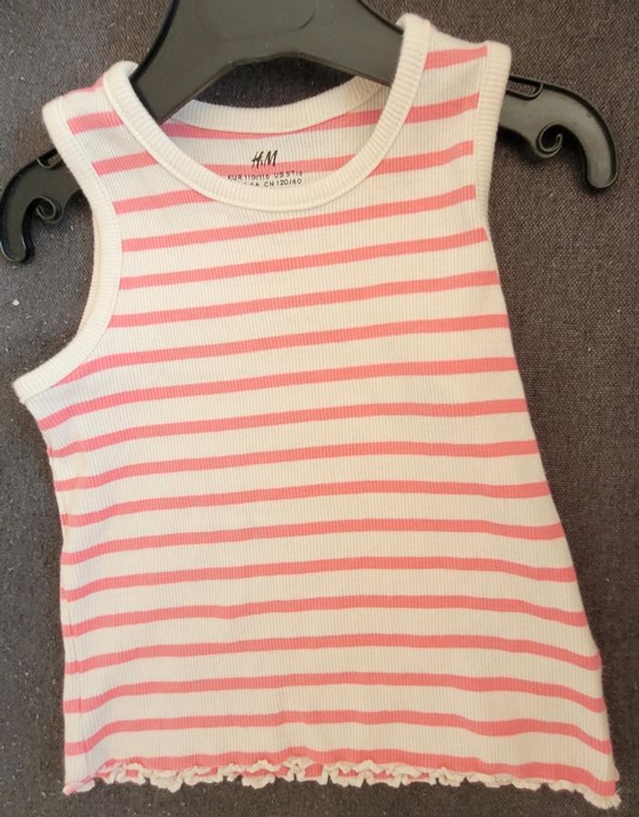* Débardeur en jersey de coton doux et côtelé. Modèle avec encolure ronde et bord surjeté à la base. * Taille 4 /6 ans, 110_116cm. * Matière : coton * Haut rayé rose et blanc. * Marque : H&M Achete en magasin, neuf. Porté quelques fois seulement. Très bon état.