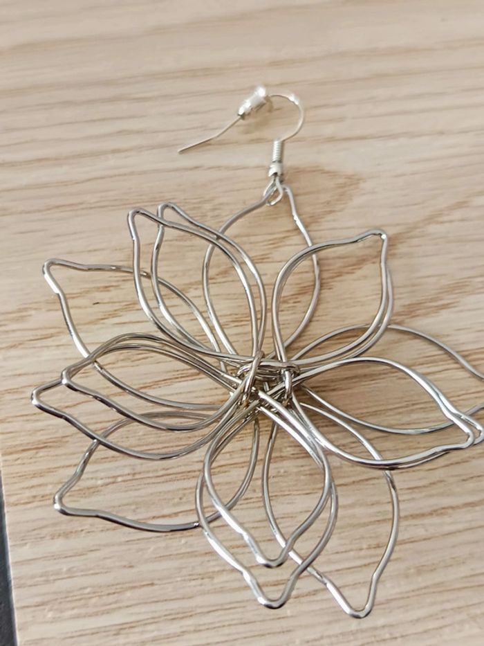 Craquez pour cette paire de boucles d’oreilles en forme de fleur, réalisée en fil argenté finement travaillé. Légères, aériennes et ultra originales, elles apportent une touche bohème chic à toutes vos tenues. Neuves, jamais portées. Diamètre approx. : 7 cm Matière : métal argenté Envoi soigné et rapide📦 #bouclesdoreilles #fleurs #bijouxfaitmain #stylebohème #cadeau