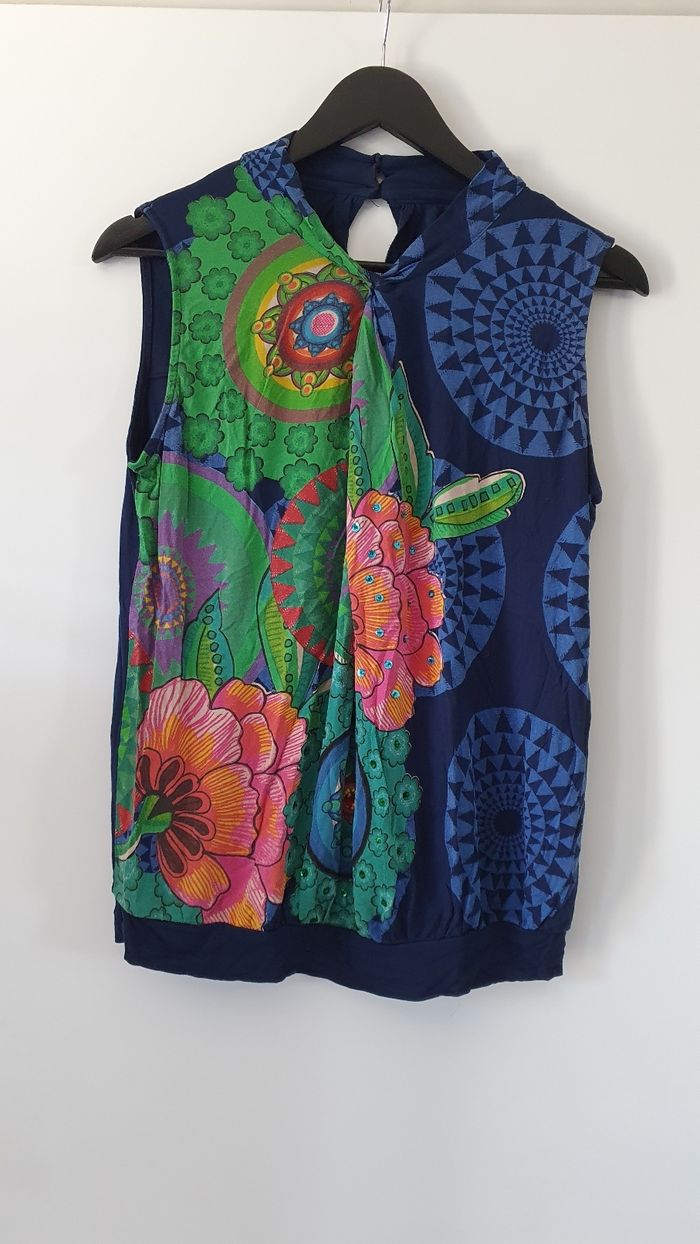 Débardeur de Couleur Bleu Marine avec des motifs colorés Taille 40 (L) En très bon état Marque Désigual