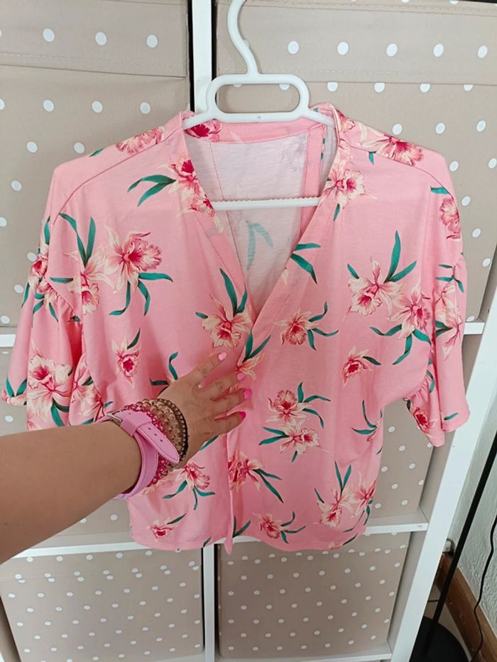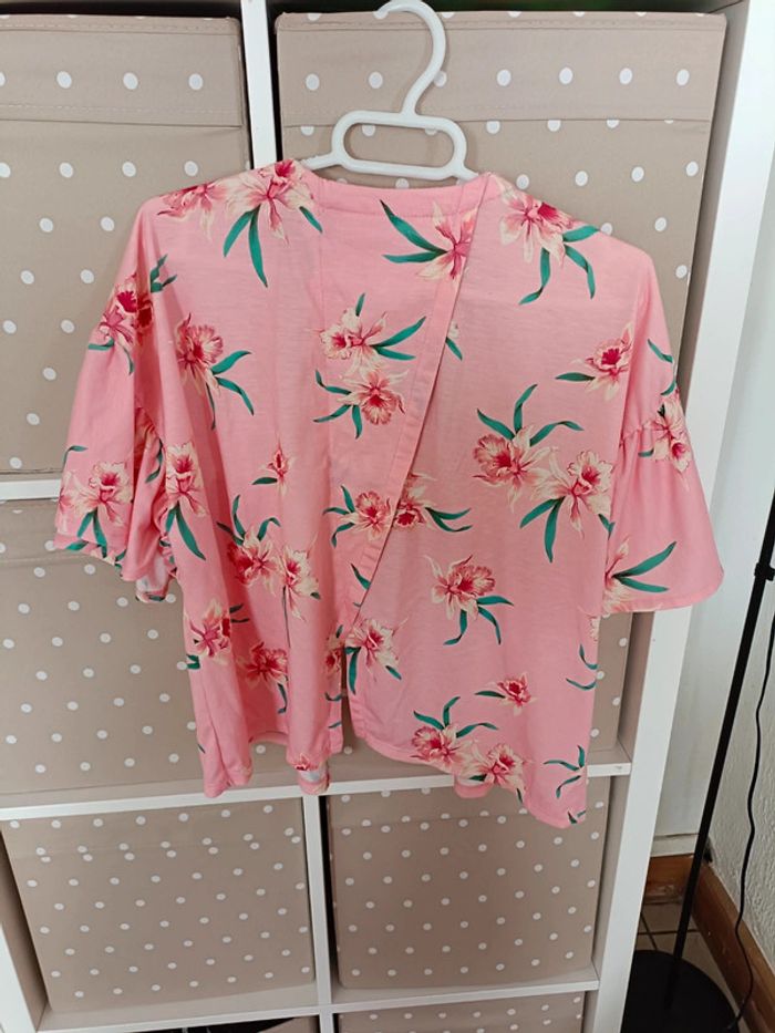 Gilet manches courtes à fleurs Taille entre 36 et 40 car le gilet reste ouvert On peut le fermer avec une petite broche éventuellement