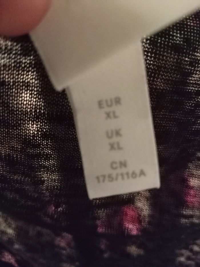 Blouse noir. Manche longue. Attaches pour faire noeud en bas devant. Matière transparente léger mais un peu chaud. Taille 44/46. Pensez au lot 🌸