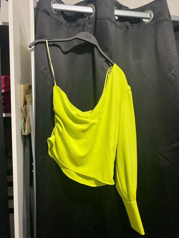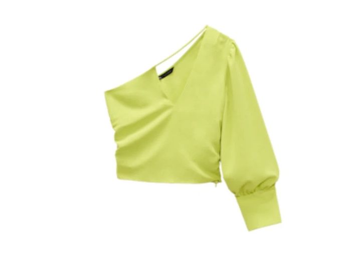 Haut asymétrique avec plis sur les côtés manche longue bouffante Couleur citron vert
