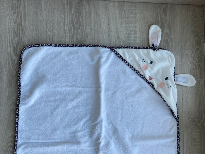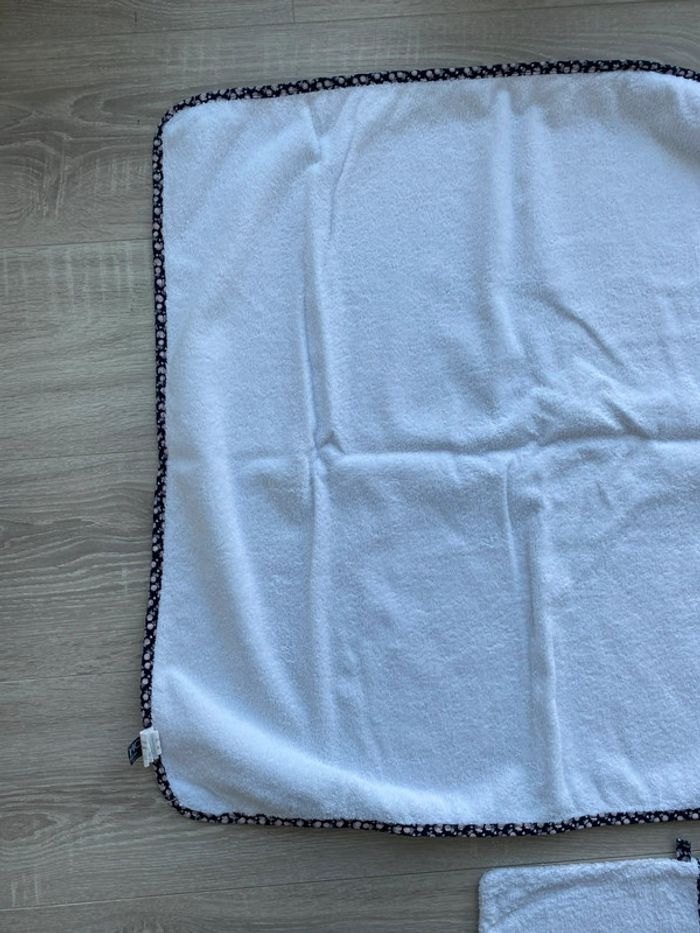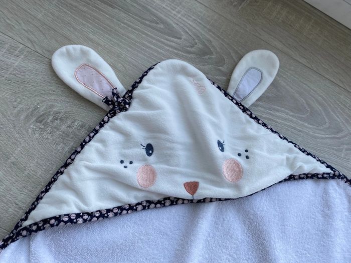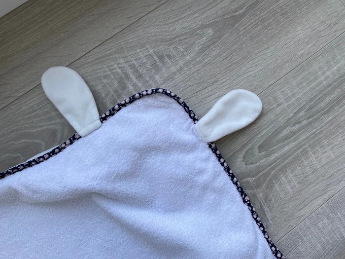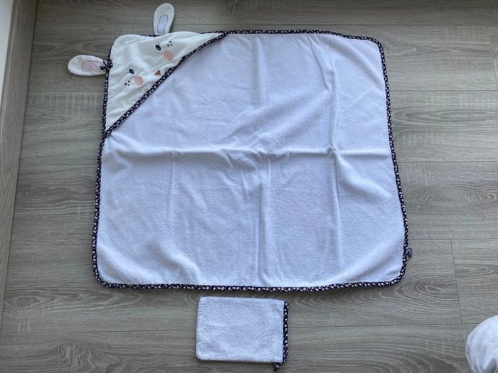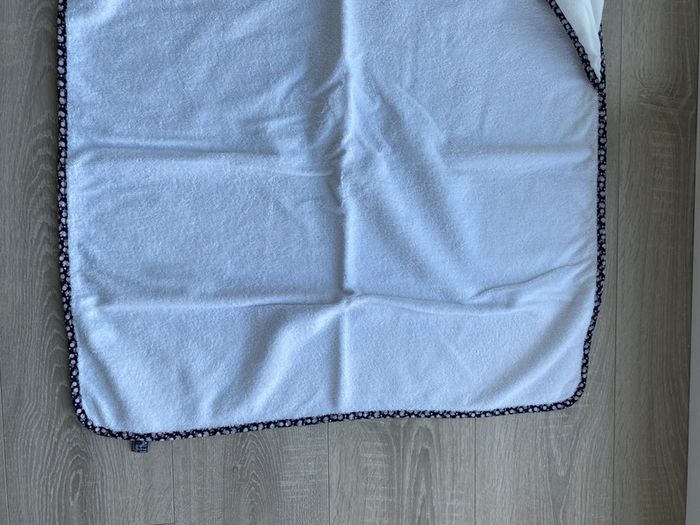 Cape de bain + gant de la collection miss fleur de lune anciennement miss chipie. Marque Sauthon. Elle est impeccable car elle a très très peu servi. Elle est douce et essuie bien.