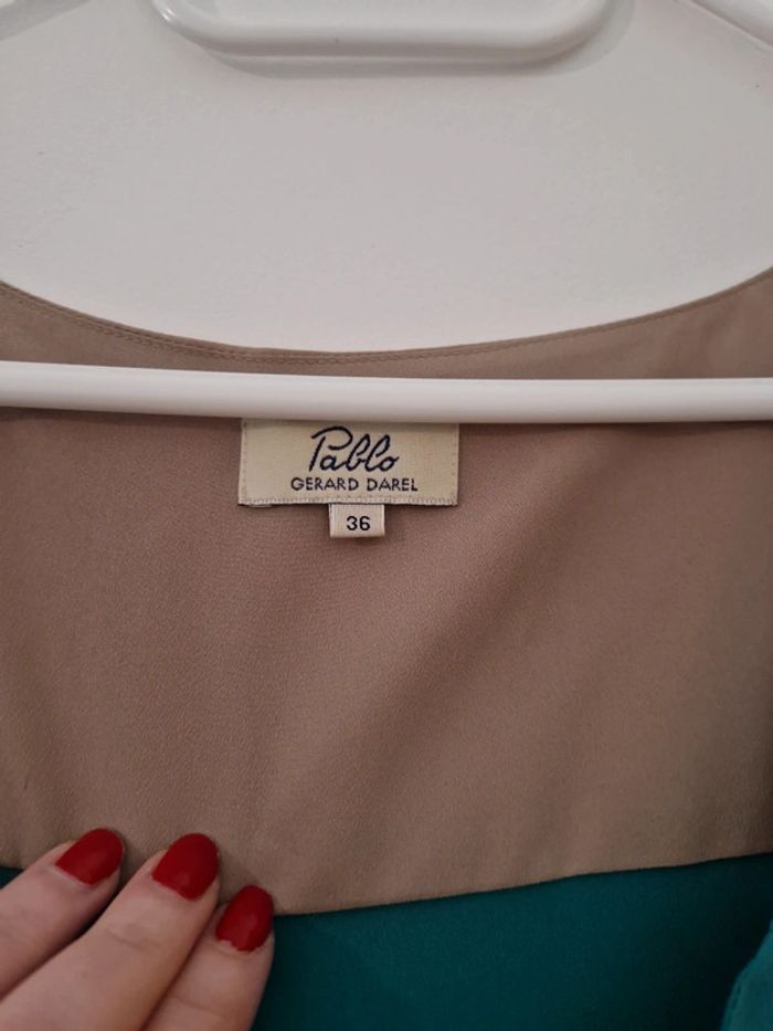 Débardeur femme avec noeud tricolor bleu vert beige TBE taille 36 Gérard darel - photo numéro 2