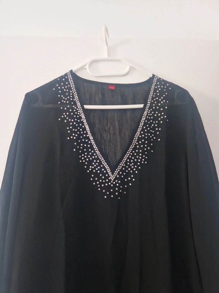 Blouse femme manche longue noire transport à strass col V TBE taille unique esprit - photo numéro 2