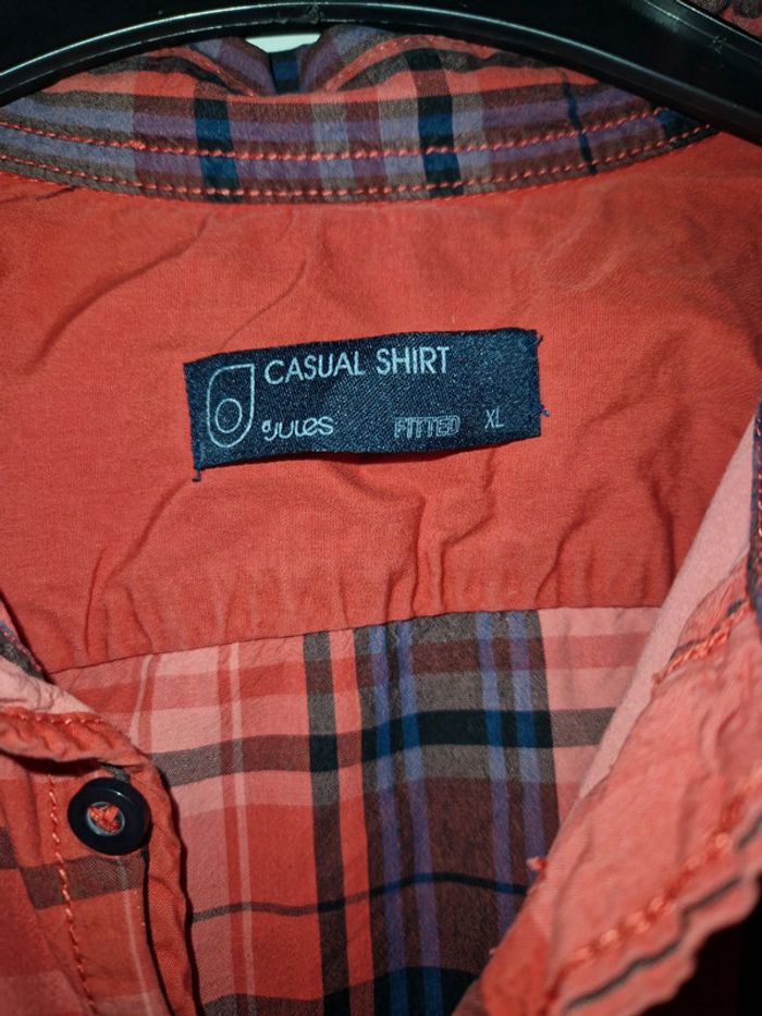 Chemise homme manche courte été carreaux rose rouge bleu casual shirt fitted taille XL jules - photo numéro 2