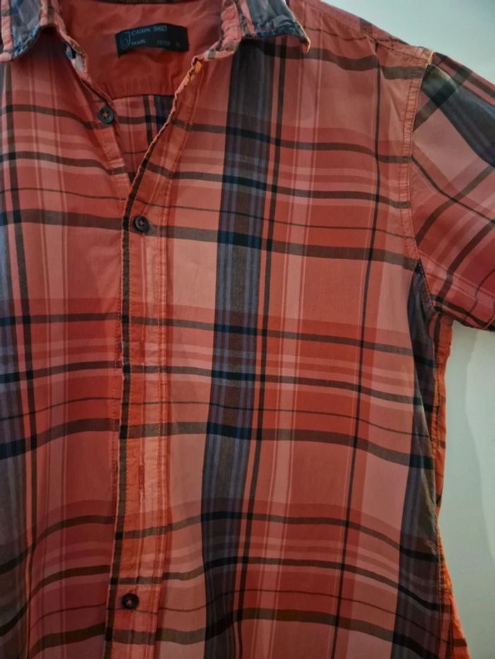 Chemise homme manche courte été carreaux rose rouge bleu casual shirt fitted taille XL jules - photo numéro 1
