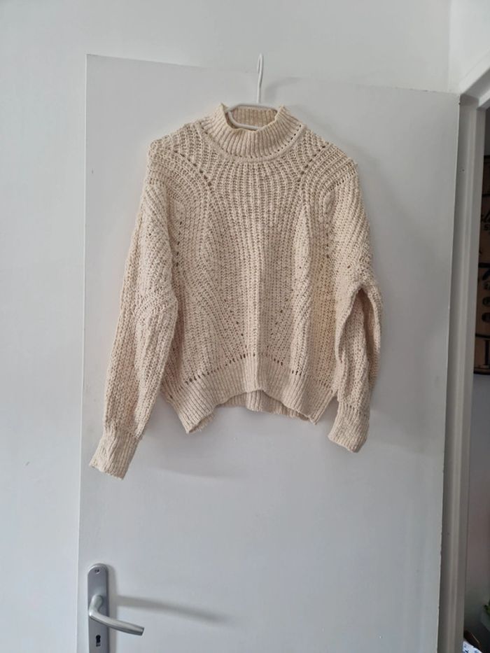 Pull grosse maille femme court manche longue beige crème TBE taille S mango casual - photo numéro 1